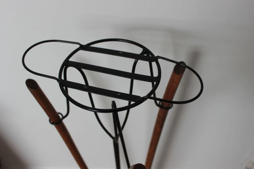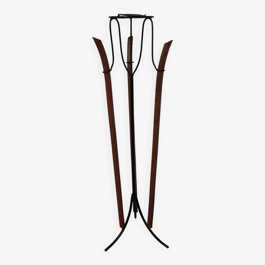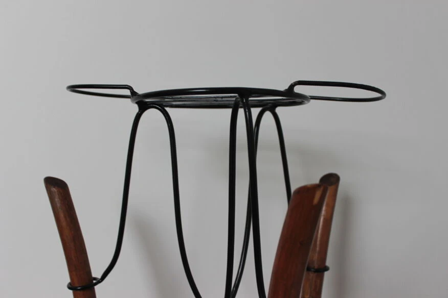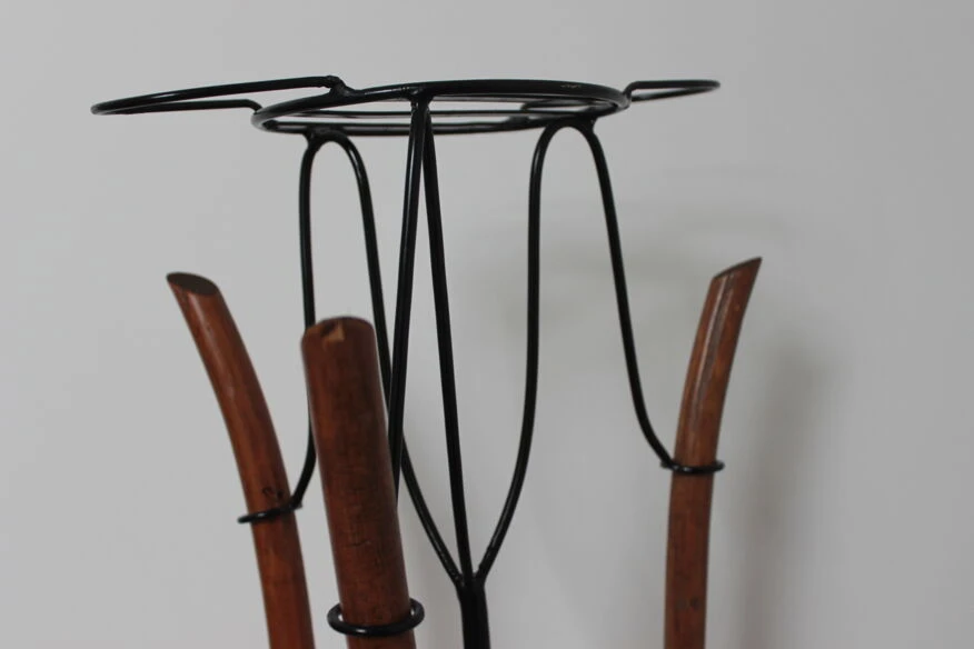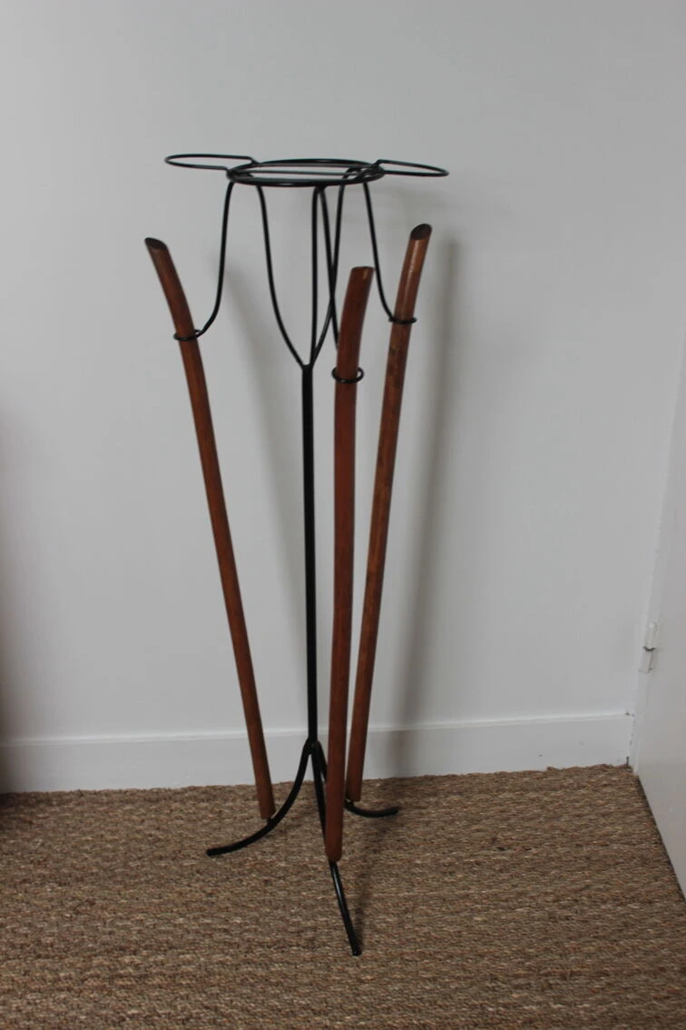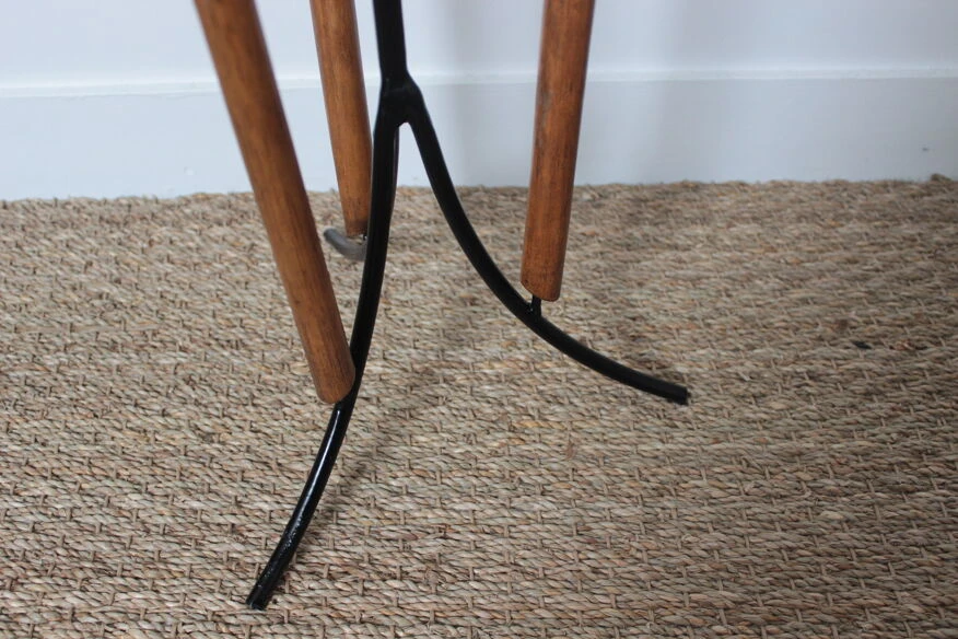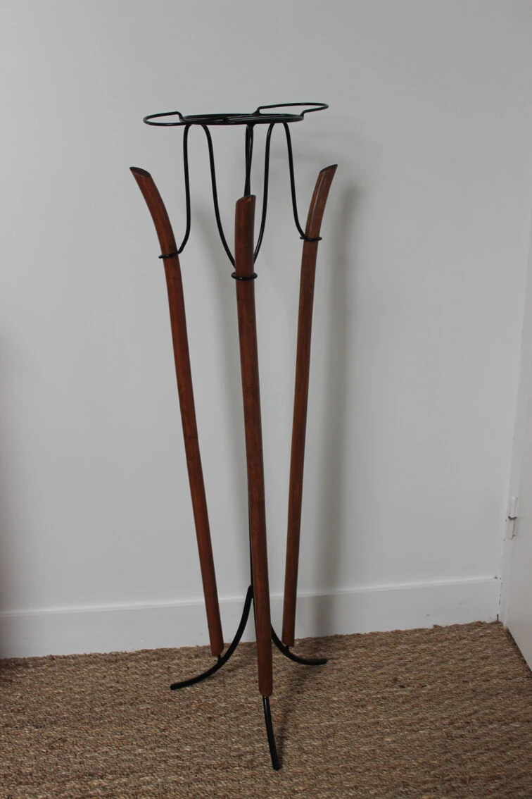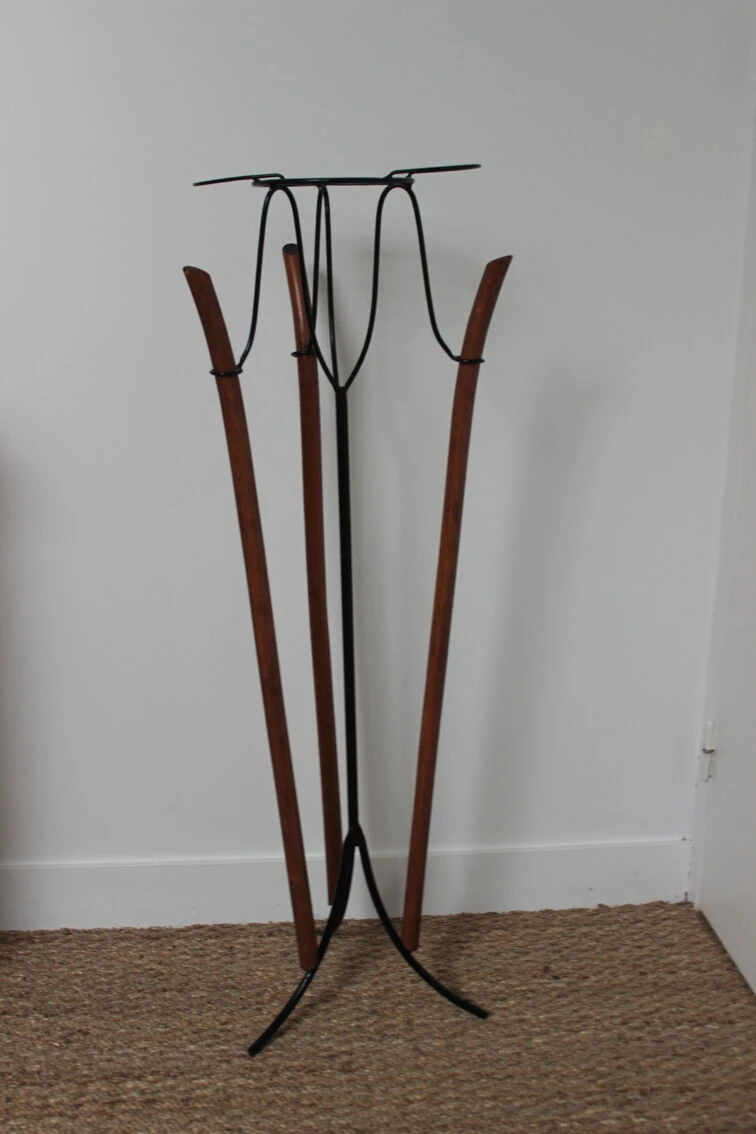Jolie sellette vintage en rotin (ou bambou) et métal, des années 50.