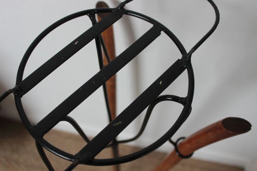 Tout petit manque de matière sur le haut d’un des morceaux de rotin (ou bambou) et marques noires sur un autre.