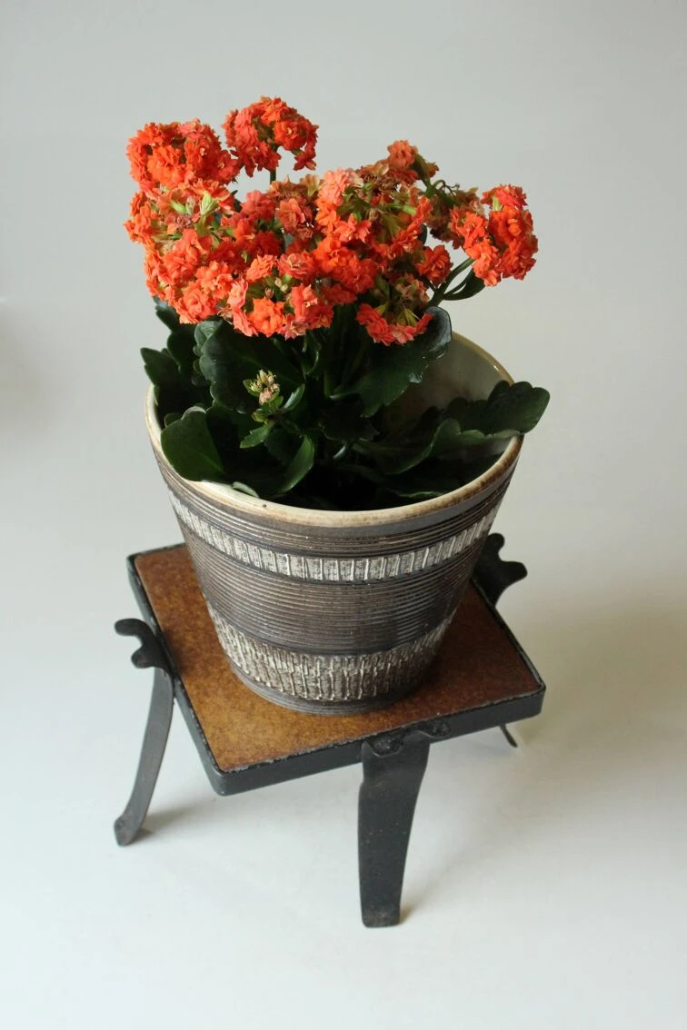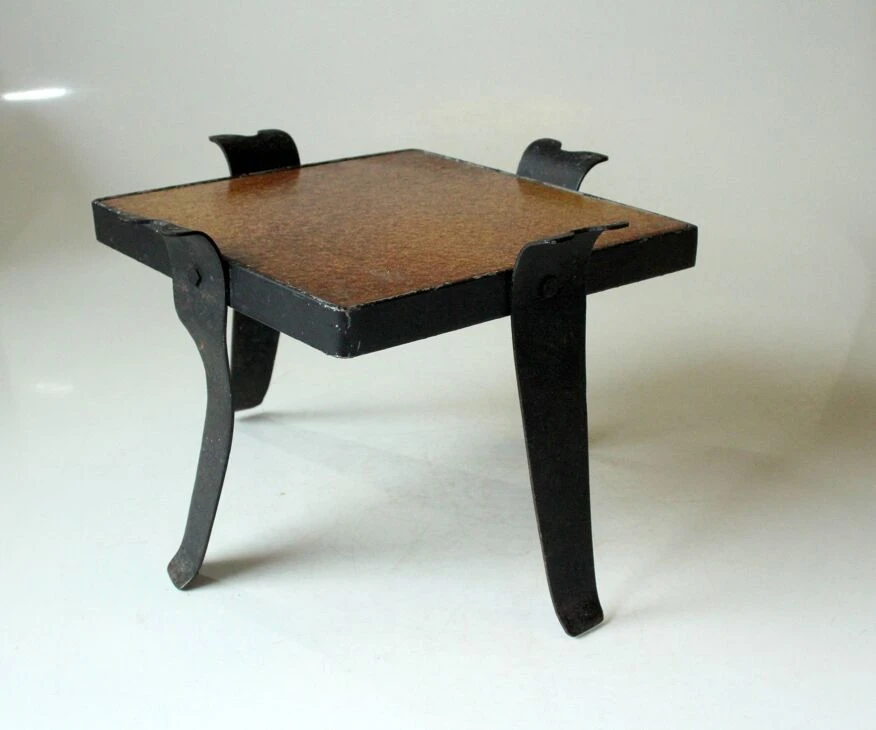 Petite plante du milieu du siècle en fer forgé avec un carreau de céramique, en bon état vintage avec des traces d’âge et d’utilisation.