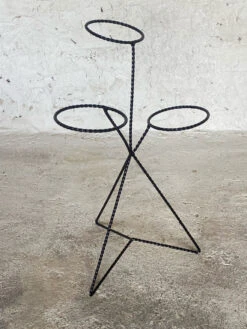 Superbe support vintage de plantes en bambou / osier sur une base de trépied.