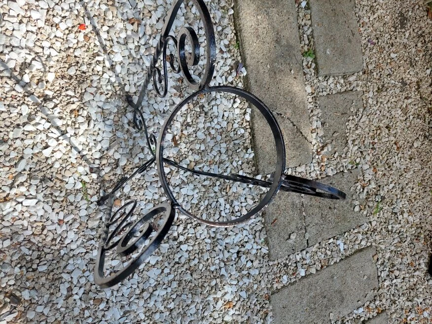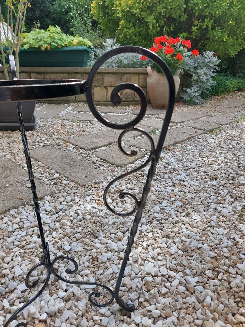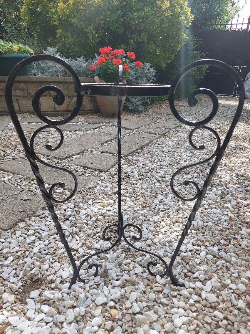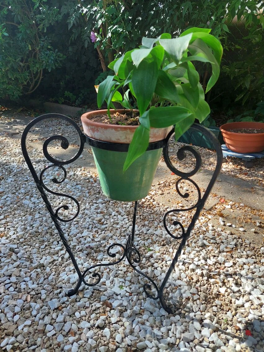 Porte-plante en fer forgé, traité anti-rouille et à volutes permettant d’accueillir 1 seule plante.