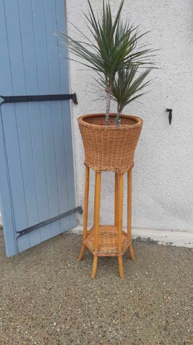 Porte plante, sellette, en osier et rotin,