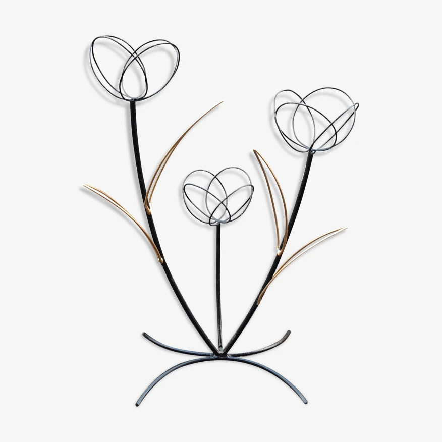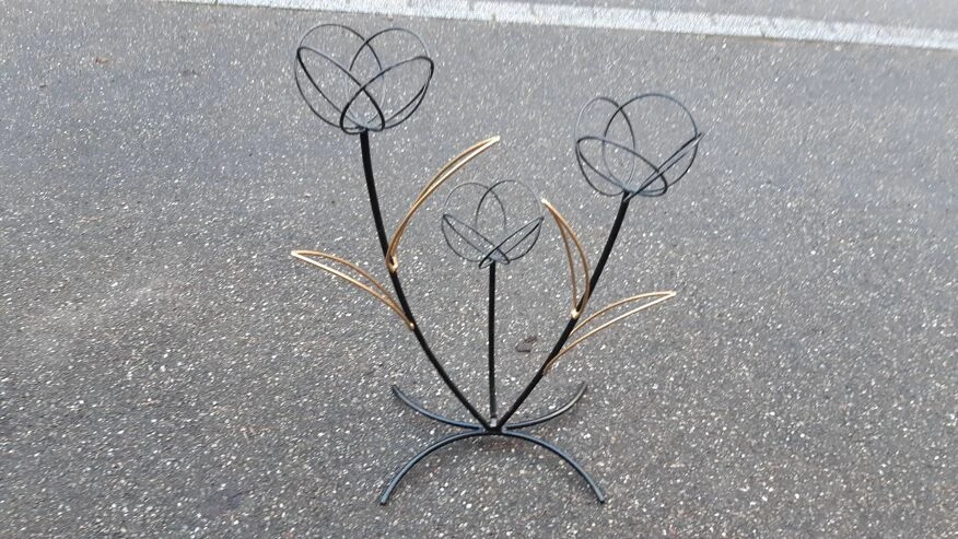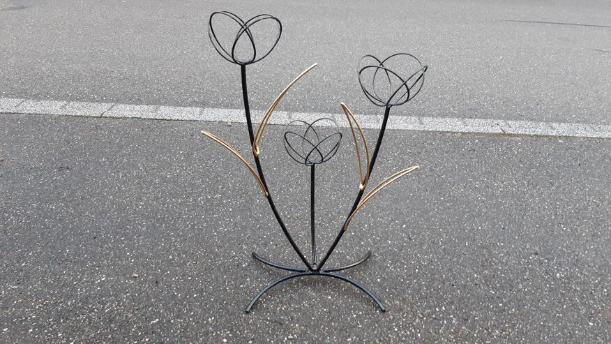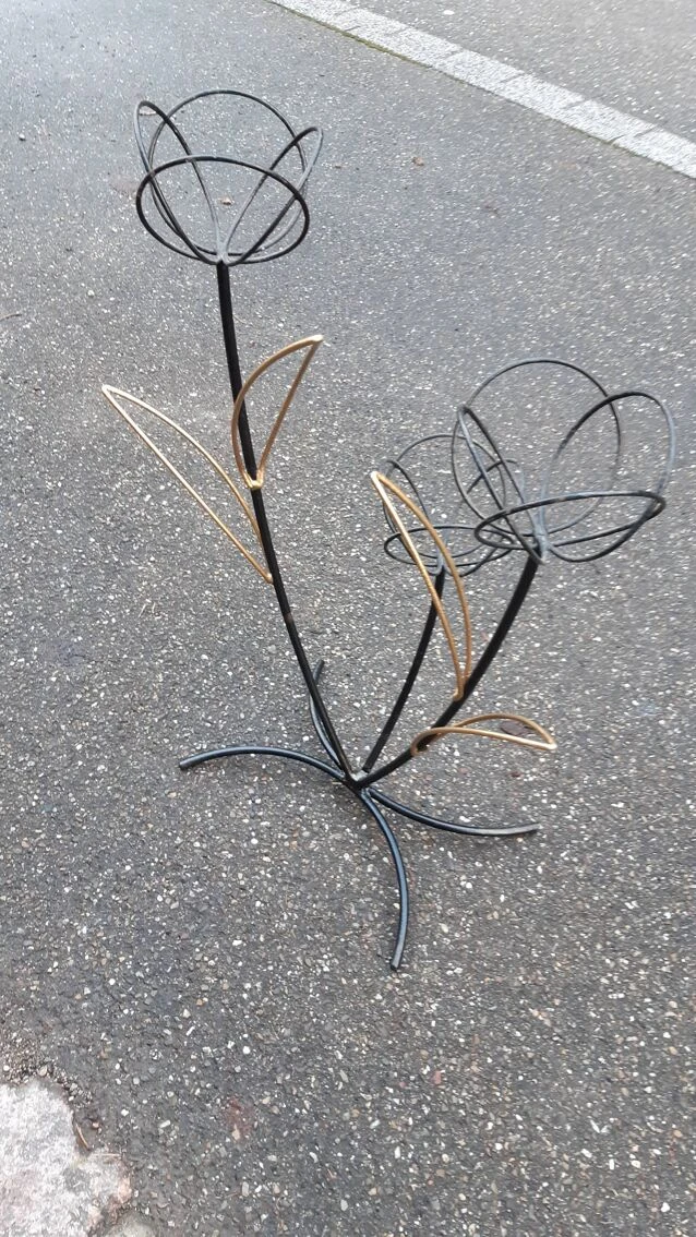 Support à plante en métal peint, joli travail français des années 50, représentant des fleurs.