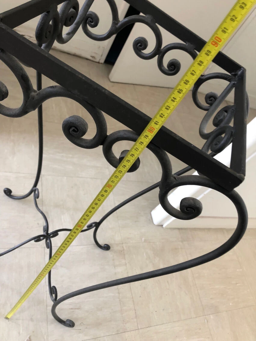 Joli porte ou autre en ferronnerie noire, il manque le verre ou la base.