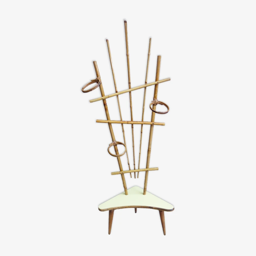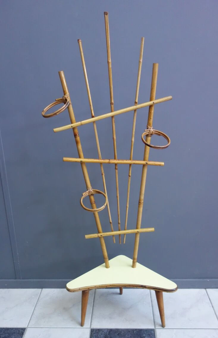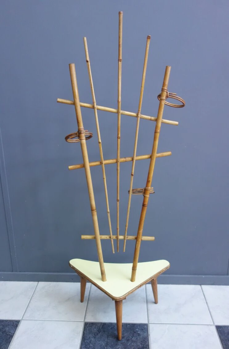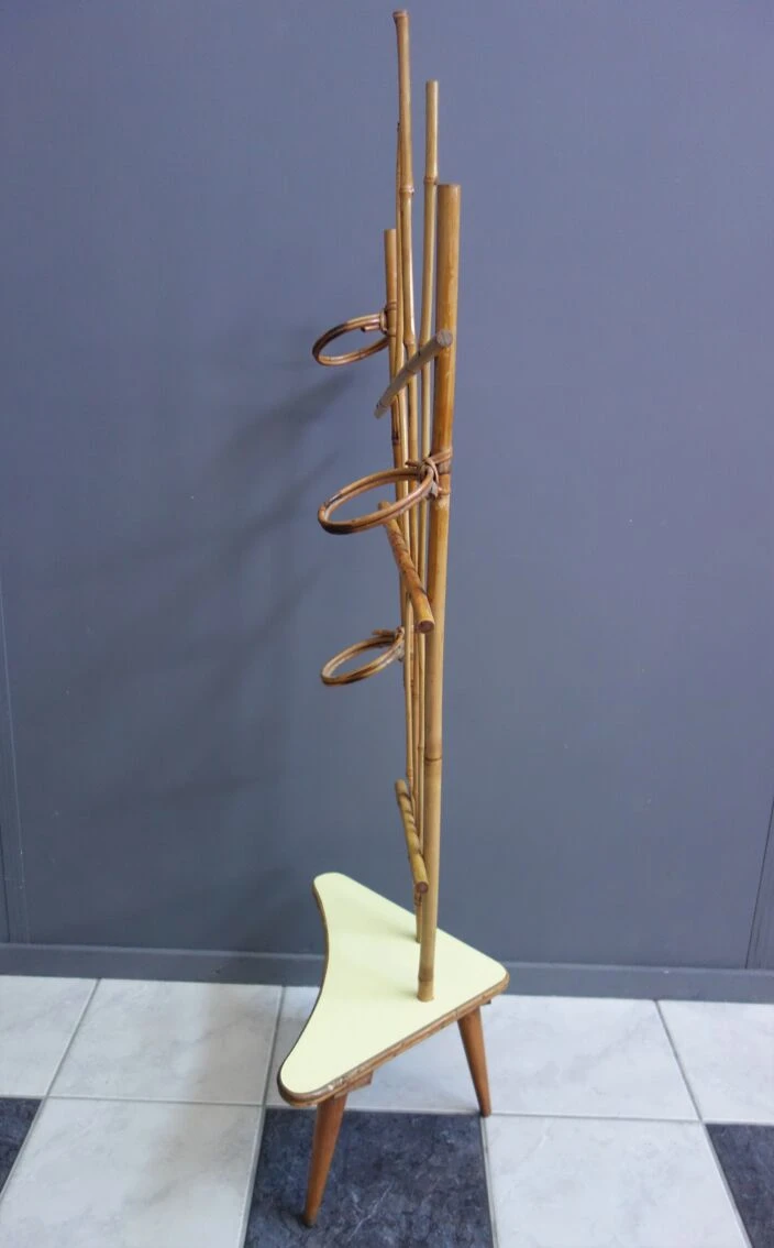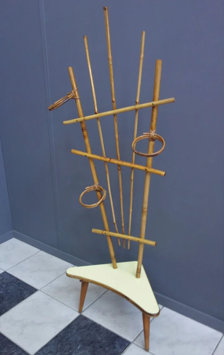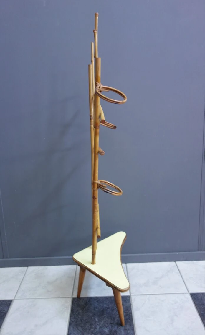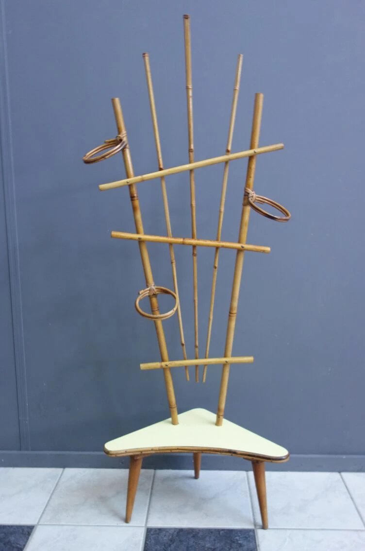 Porte-plante Rotin En Formica Jaune Des Années 1960