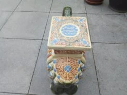 Porte Plante Du Milieu Du Siècle En Fer Forgé Avec Un Carreau De Céramique, Vintage Des Années 1970