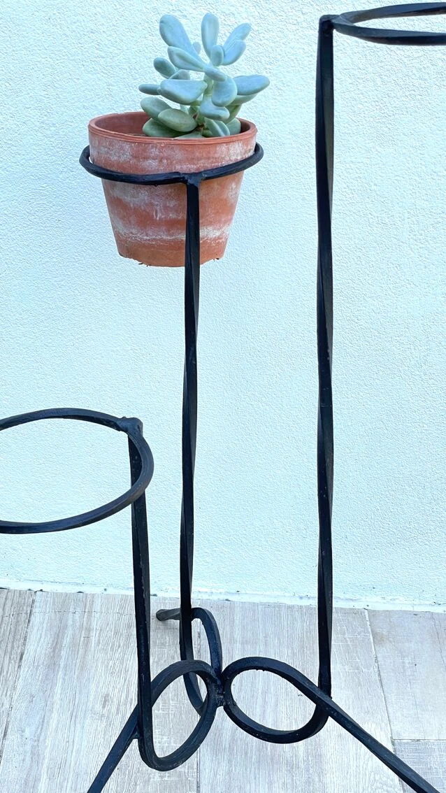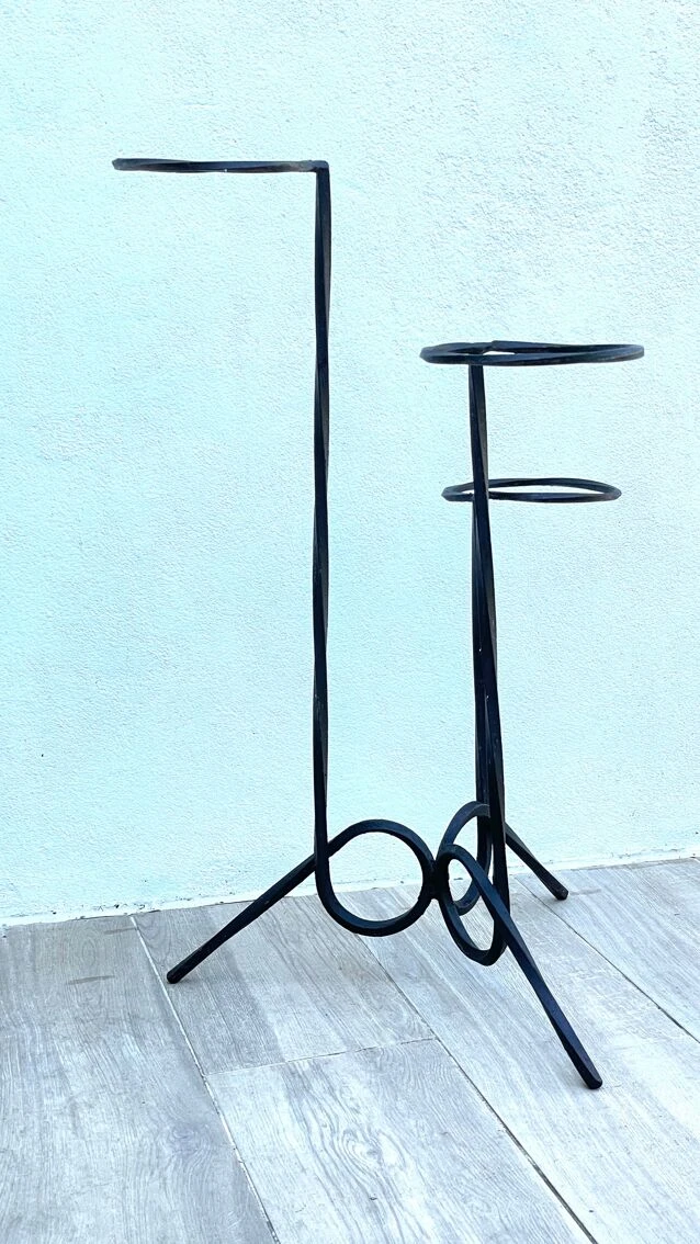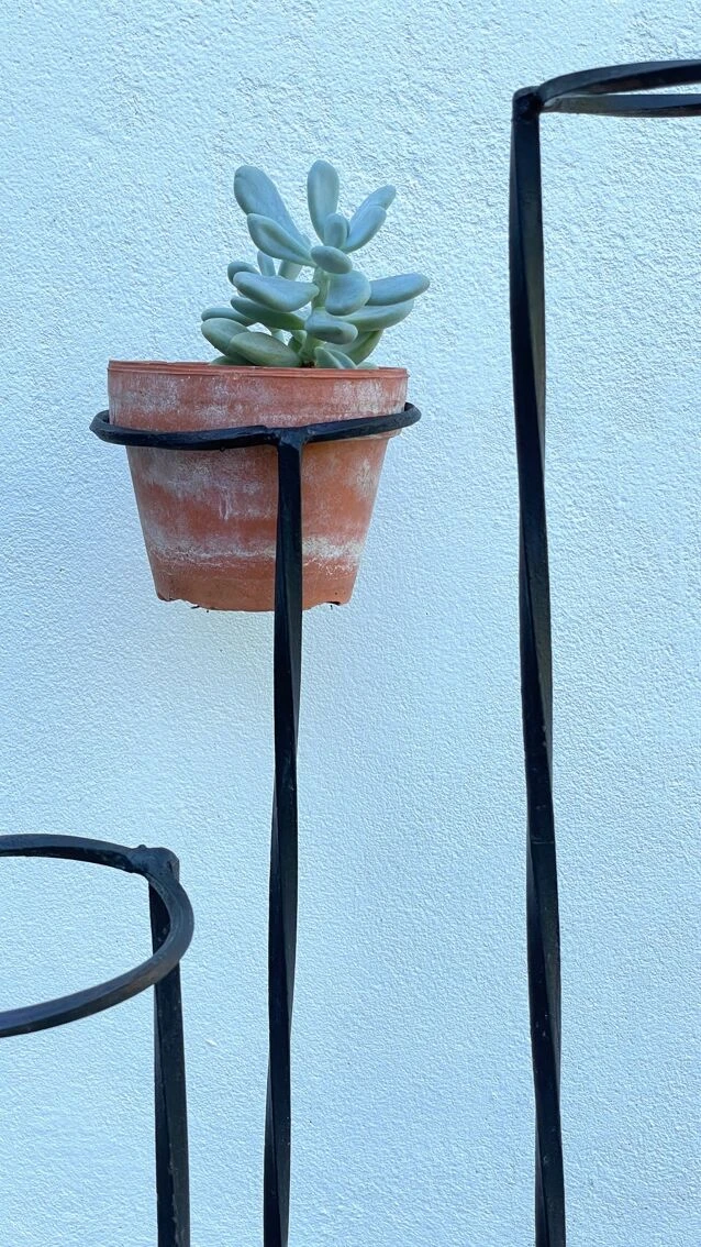 Joli porte plantes géométrique design vintage, une pièce toute en acier, graphique et chic comme on aime !