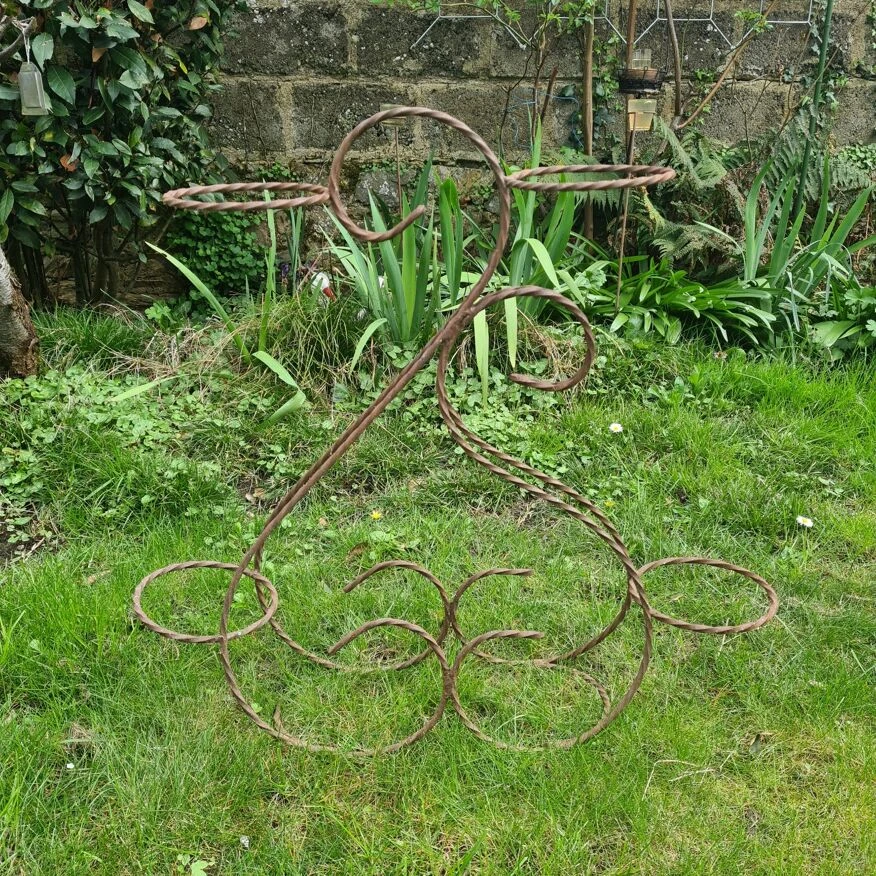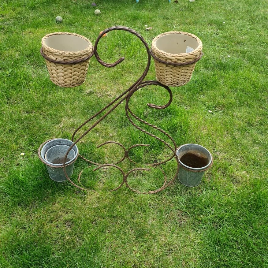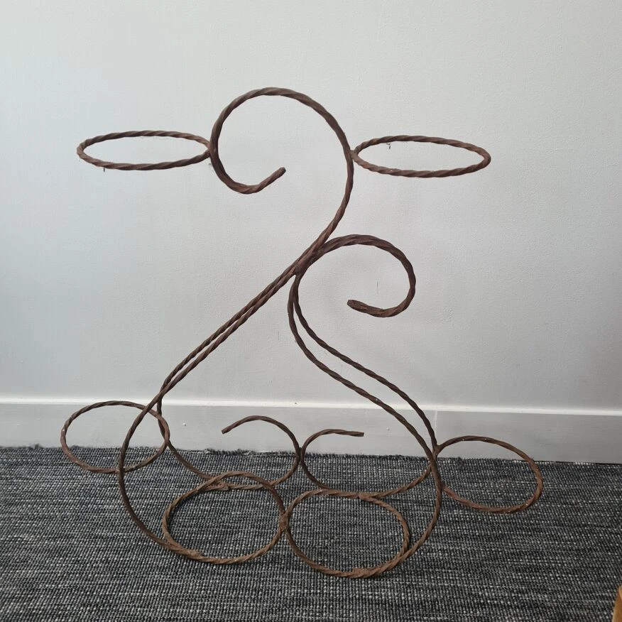 Porte-plantes en fer forgé torsadé datant des années 1950.