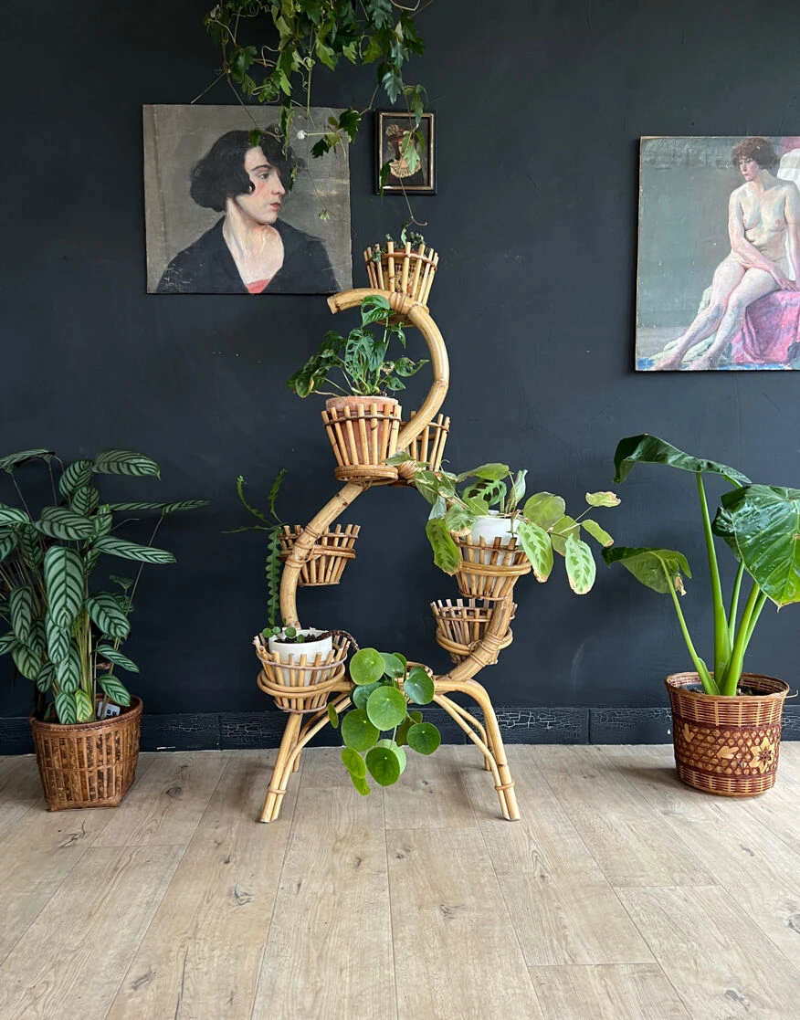 Objet très décoratif et pratique en parfait état avec ses pots d’origines qui peuvent être enlevés de leur support.