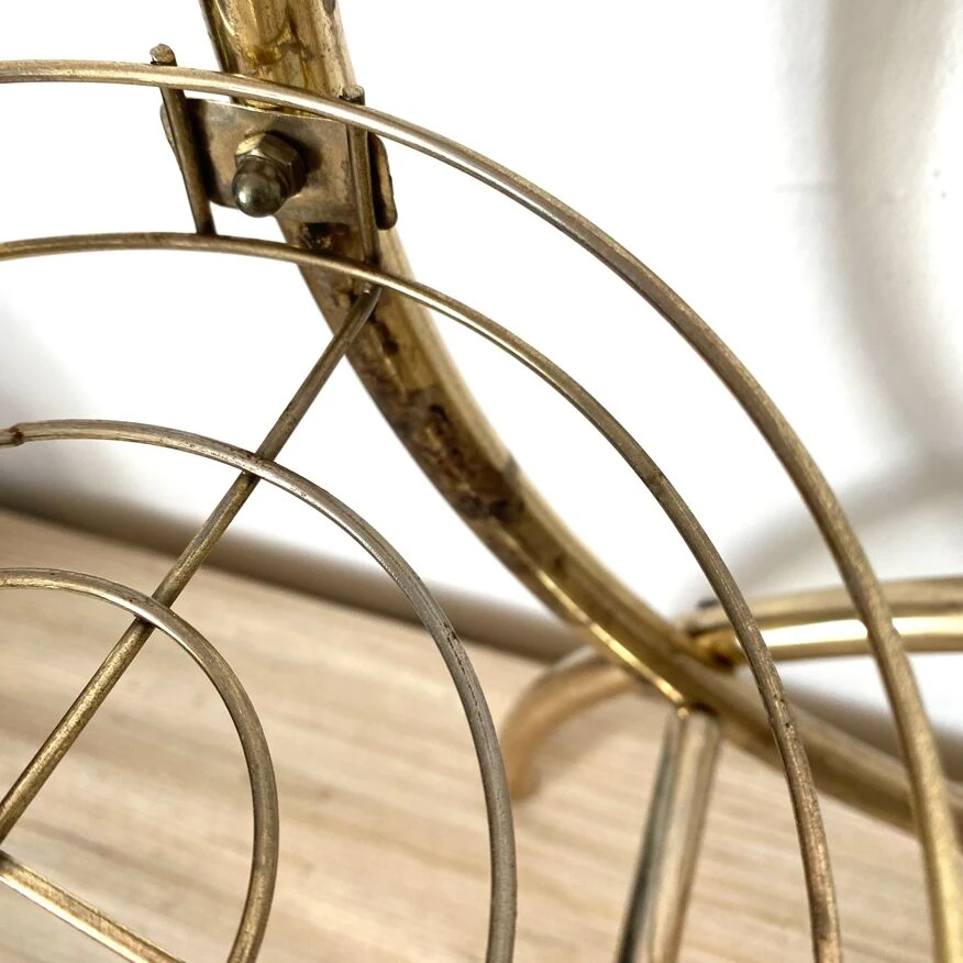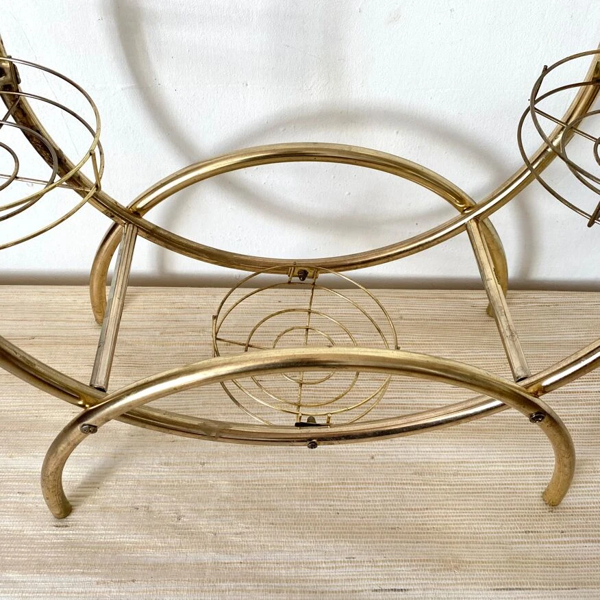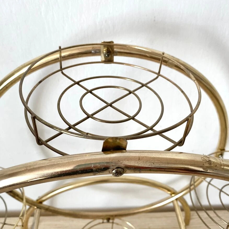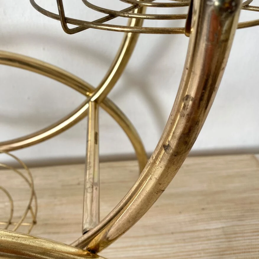 Structure tubulaire légère en métal doré avec 4 plateaux ronds grillagés.