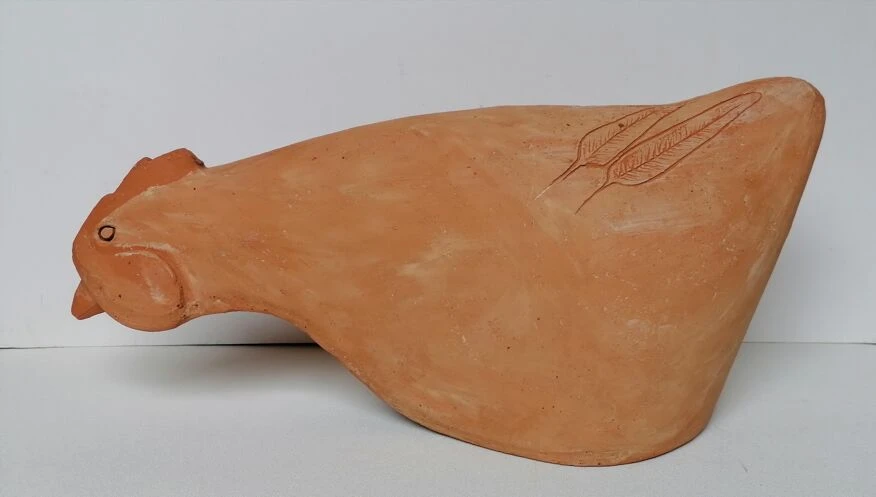 Grande et lourde poule en terre cuite de la poterie clarous.