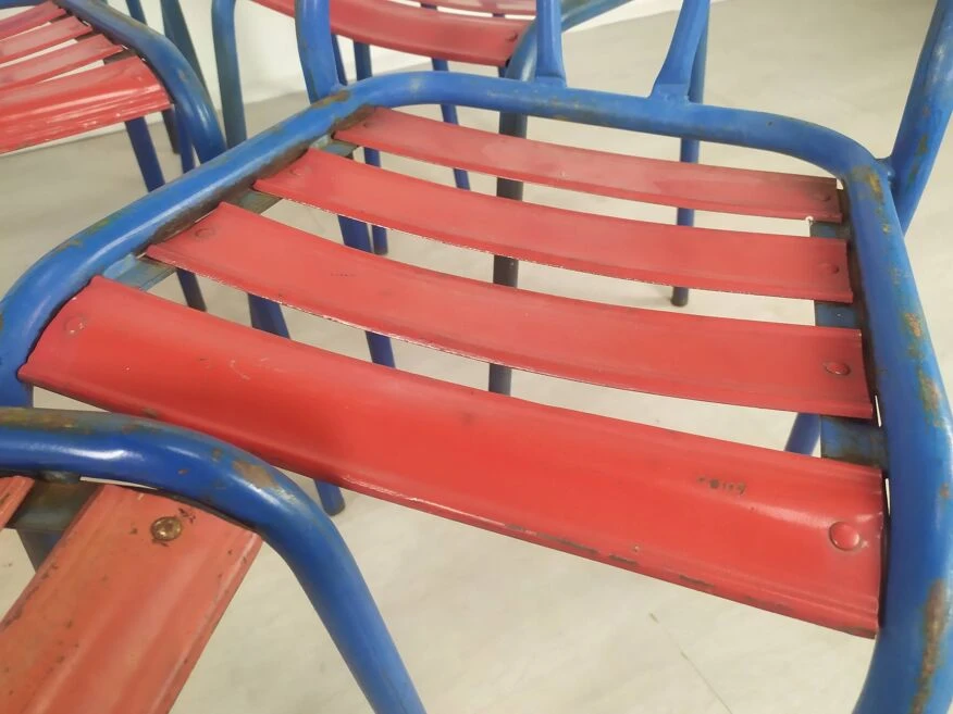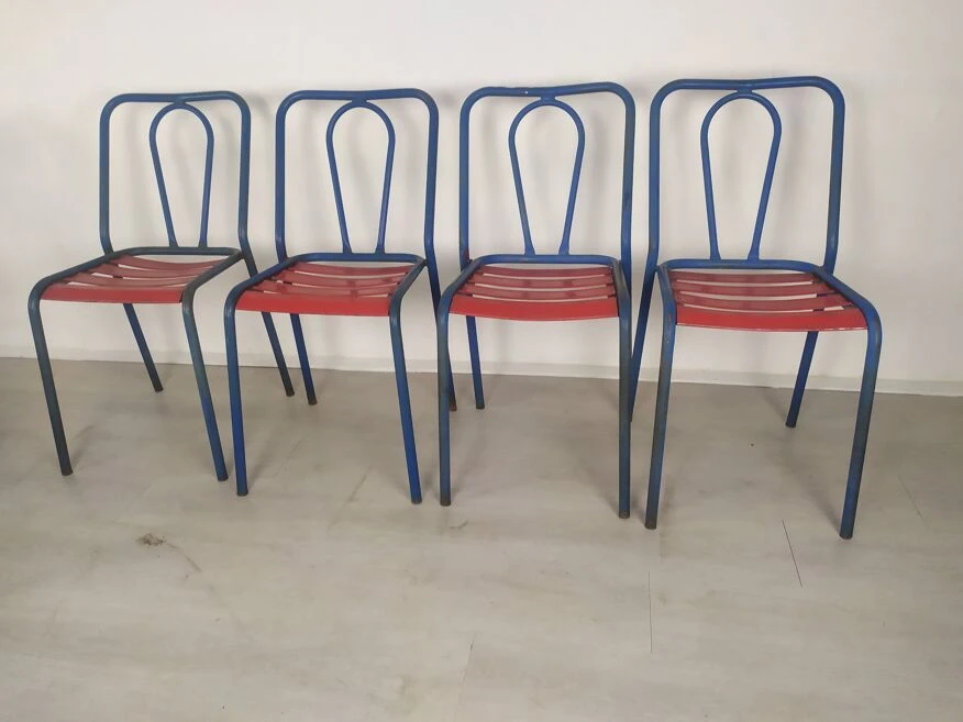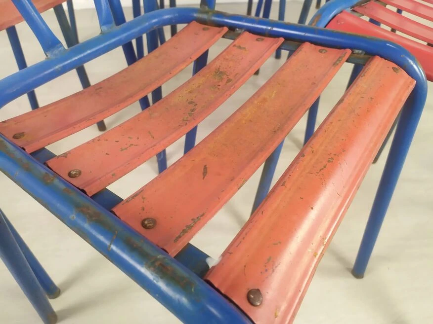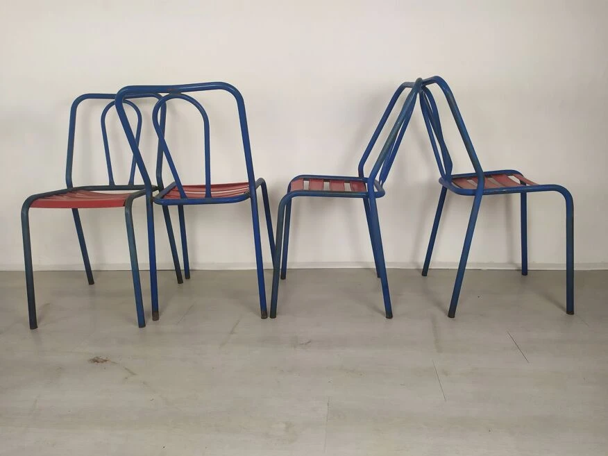 Série de 8 chaises empilables, parine du temps, toutes stables et solides.