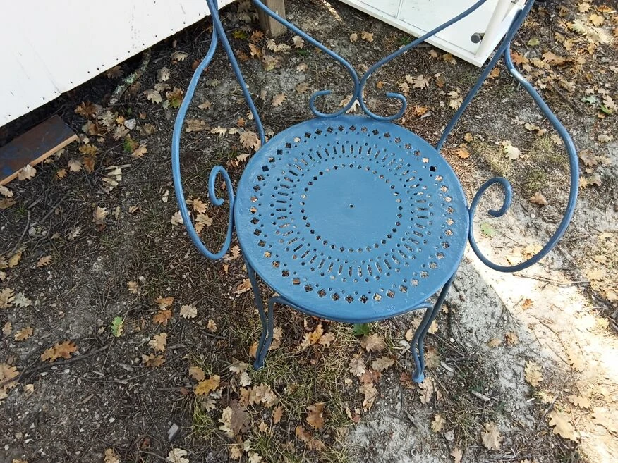 L’ensemble est peint en bleu provence avec une peinture spéciale fer antirouille.