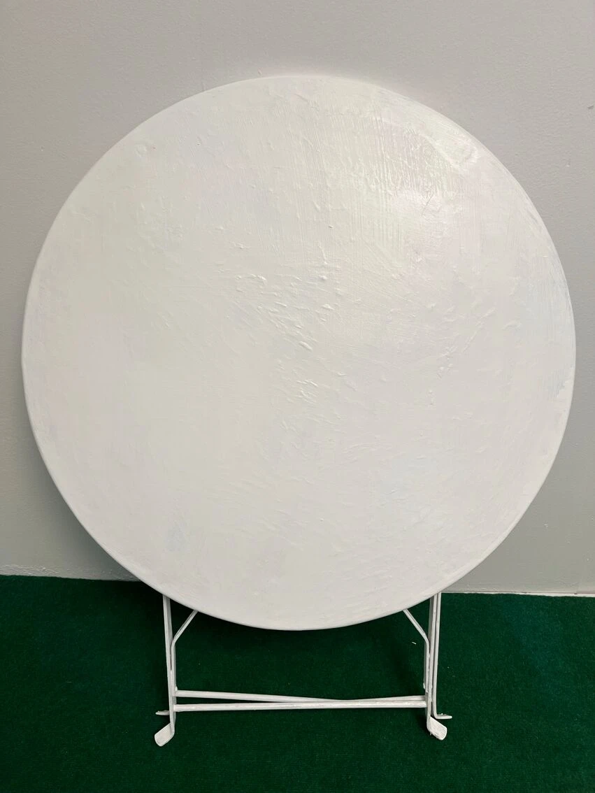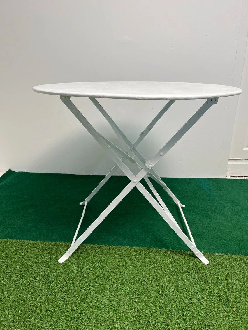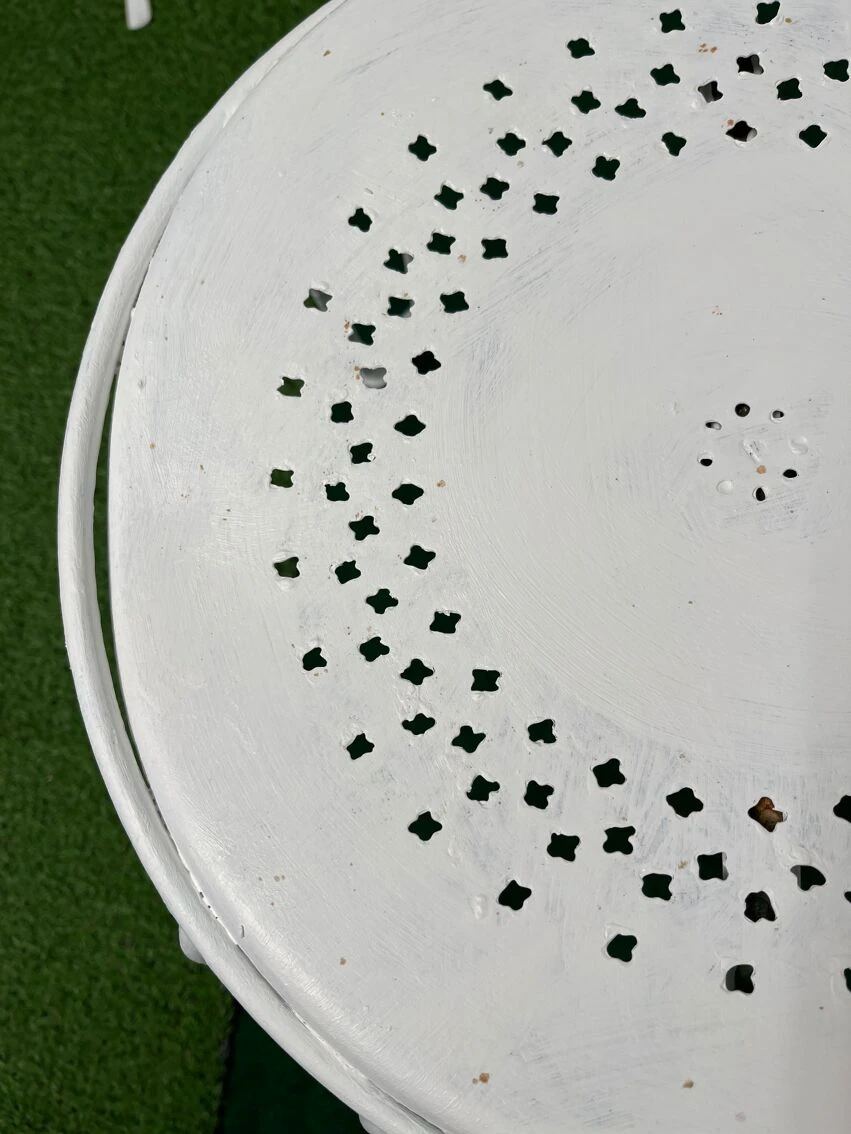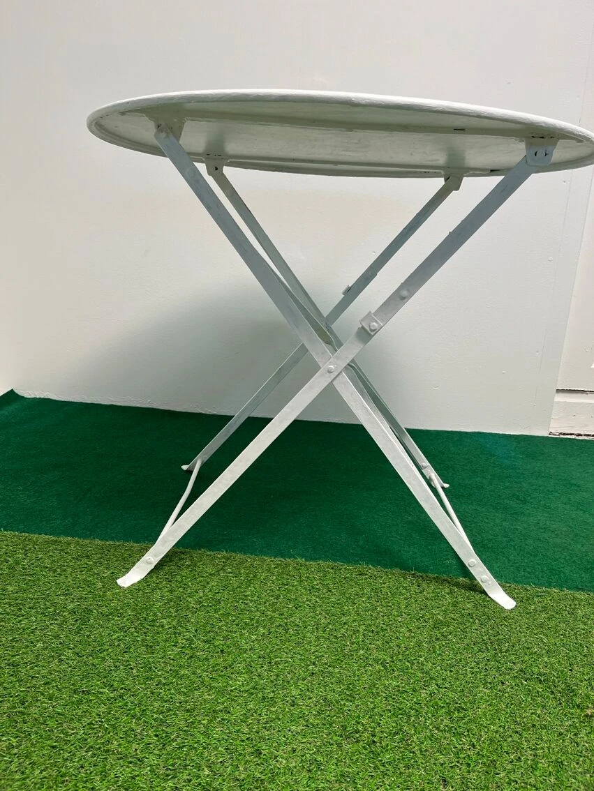 Salon de jardin fer forgé pliante année 50-60, 2 chaises identiques et une table facile à plier, idéal pour balcon ou petite pièces.