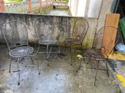 Lot De 4 Chaises De Jardin Terrasse Bistro ,guingette Pliantes Début XX ème Fer Et Bois