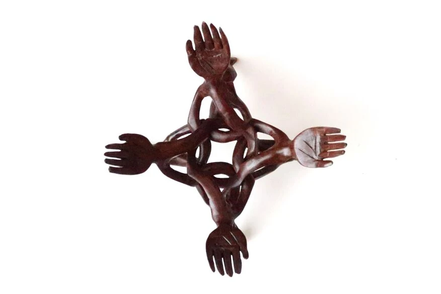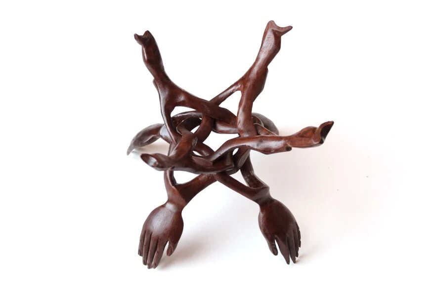 Les mains peuvent également soutenir un plateau et l’objet peut devenir une petite table.