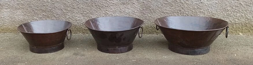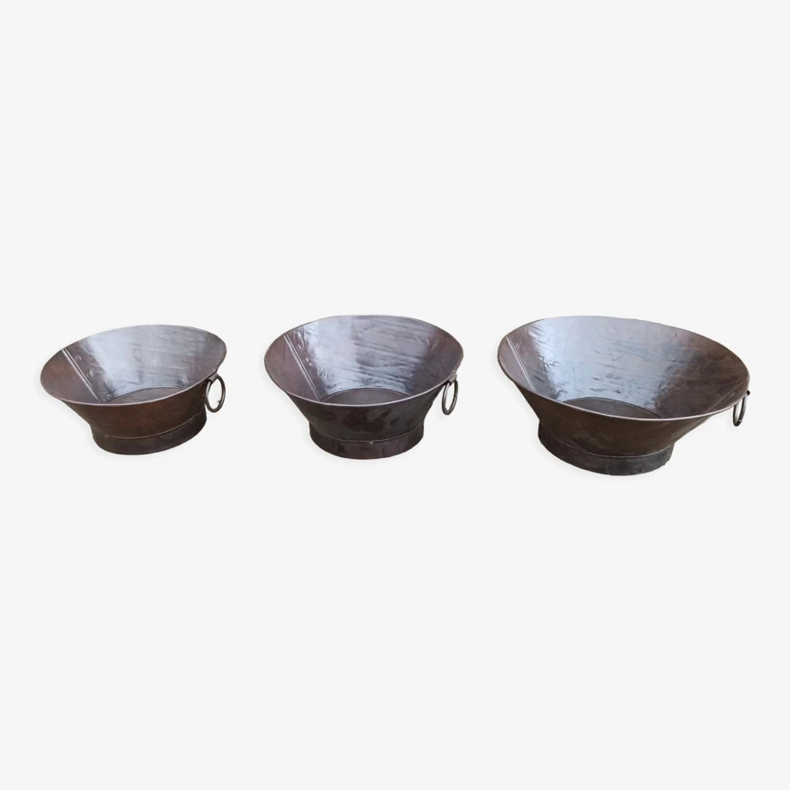 Set de 3 pots anciens en métal.