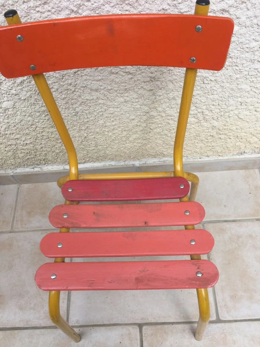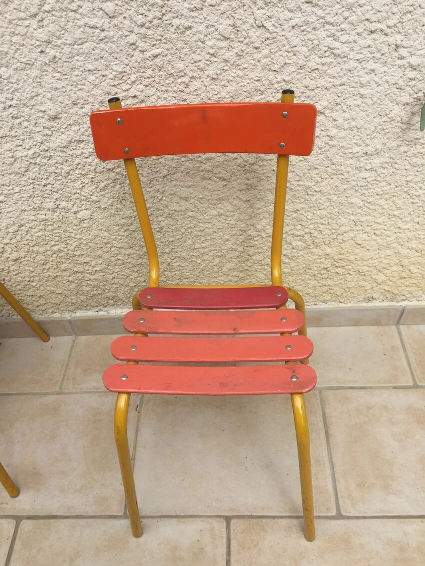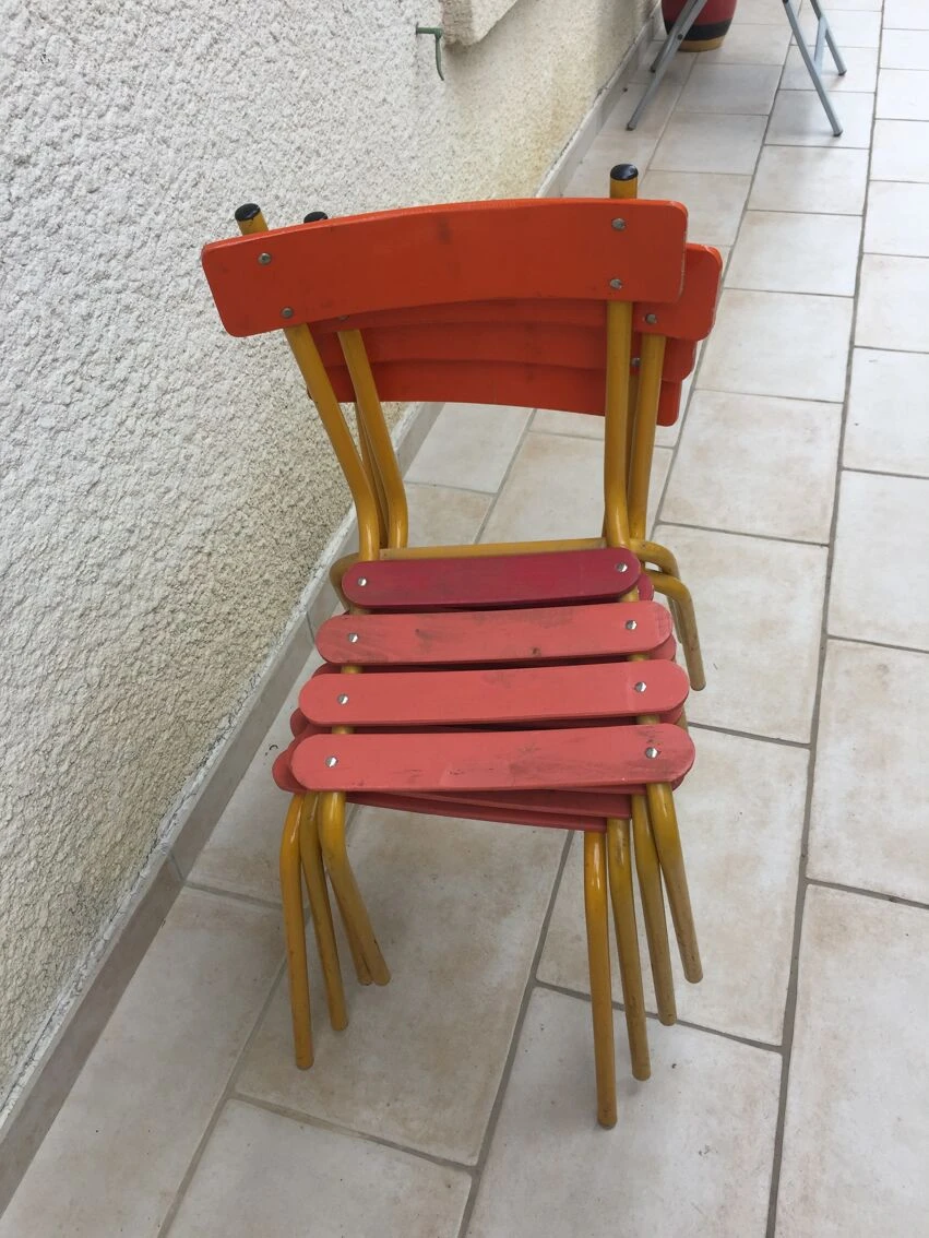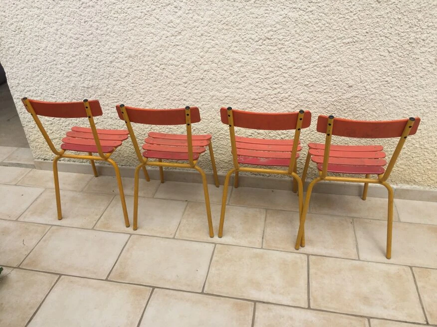 4 chaises de jardin colorées dans les tons de rouge-orangé