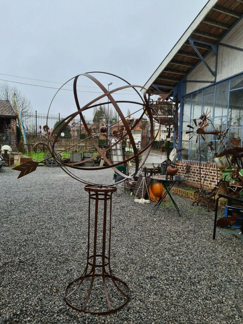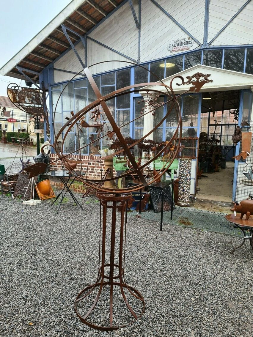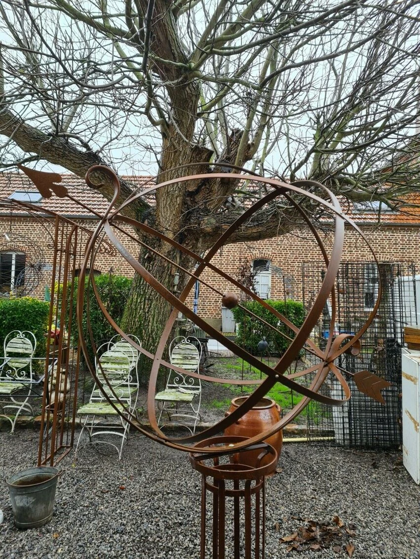 Sphère celeste en fer forgé sur socle 1 m de diametre 2 m de haut.