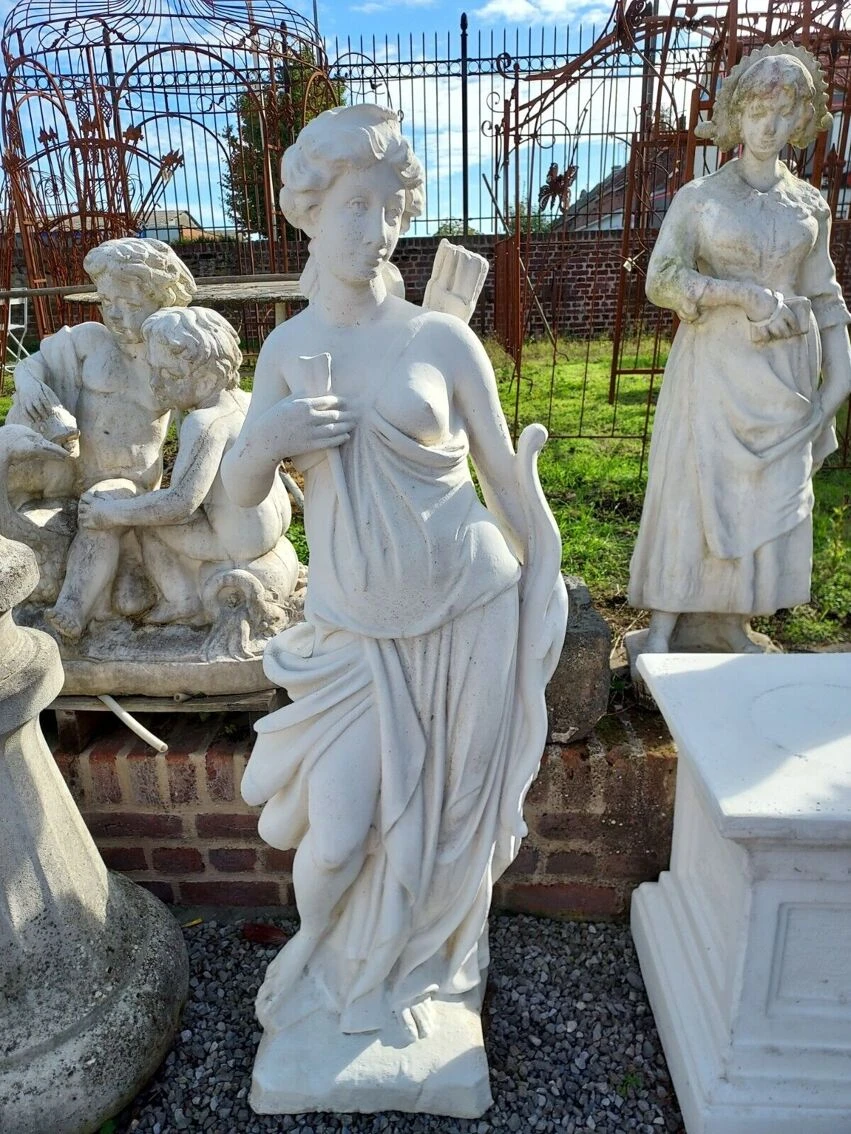 Statue de jardin d’une femme diane chasseresse en pierre reconstituée.