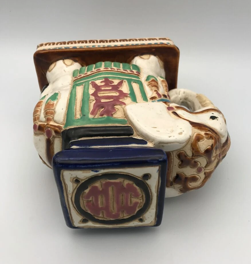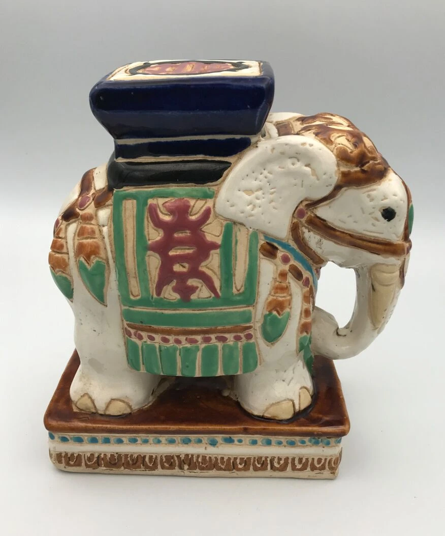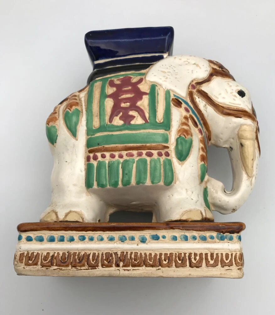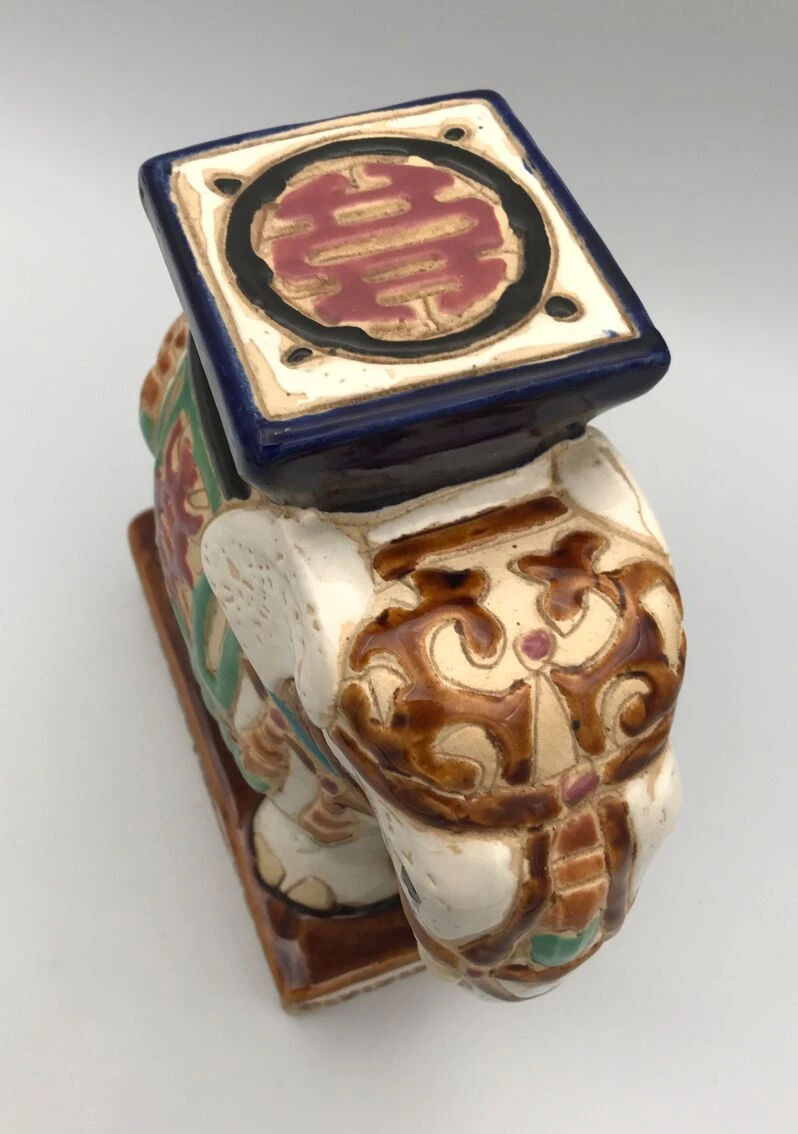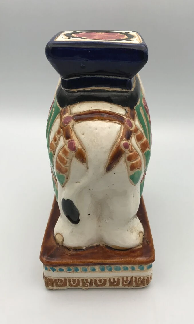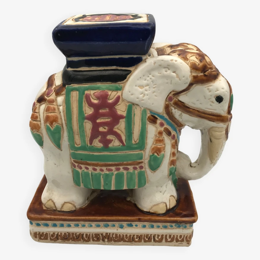 Support porte-plante éléphant en céramique sculpture polychrome décorative 20 cm.