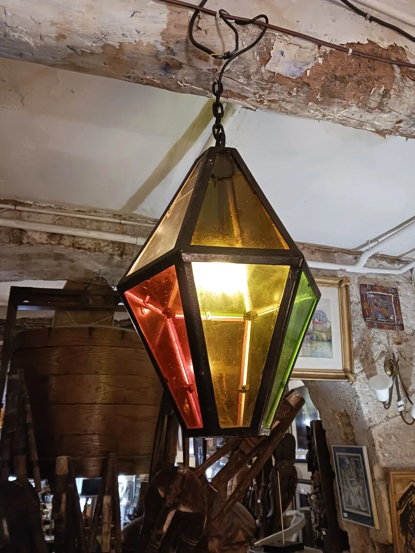 La lanterne est entièrement d’origine, vitre coloré, bullé d’époque.