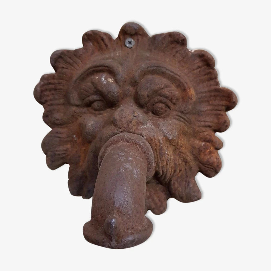 Tête de lion avec robinet en fonte pour bassin ou fontaine.