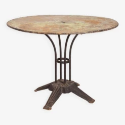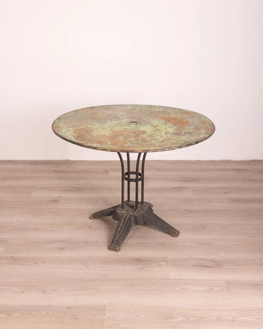 Table d’extérieur avec base en fer et plateau en métal peint, années 1960.