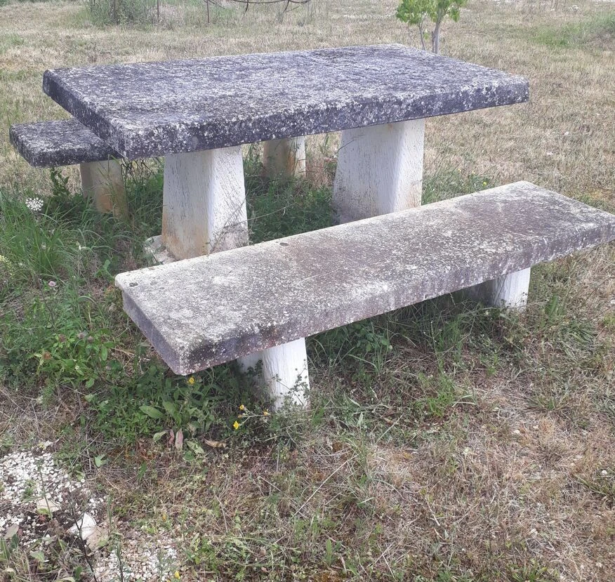 Table de jardin beton et bancs belle patine dans tres bon jus.