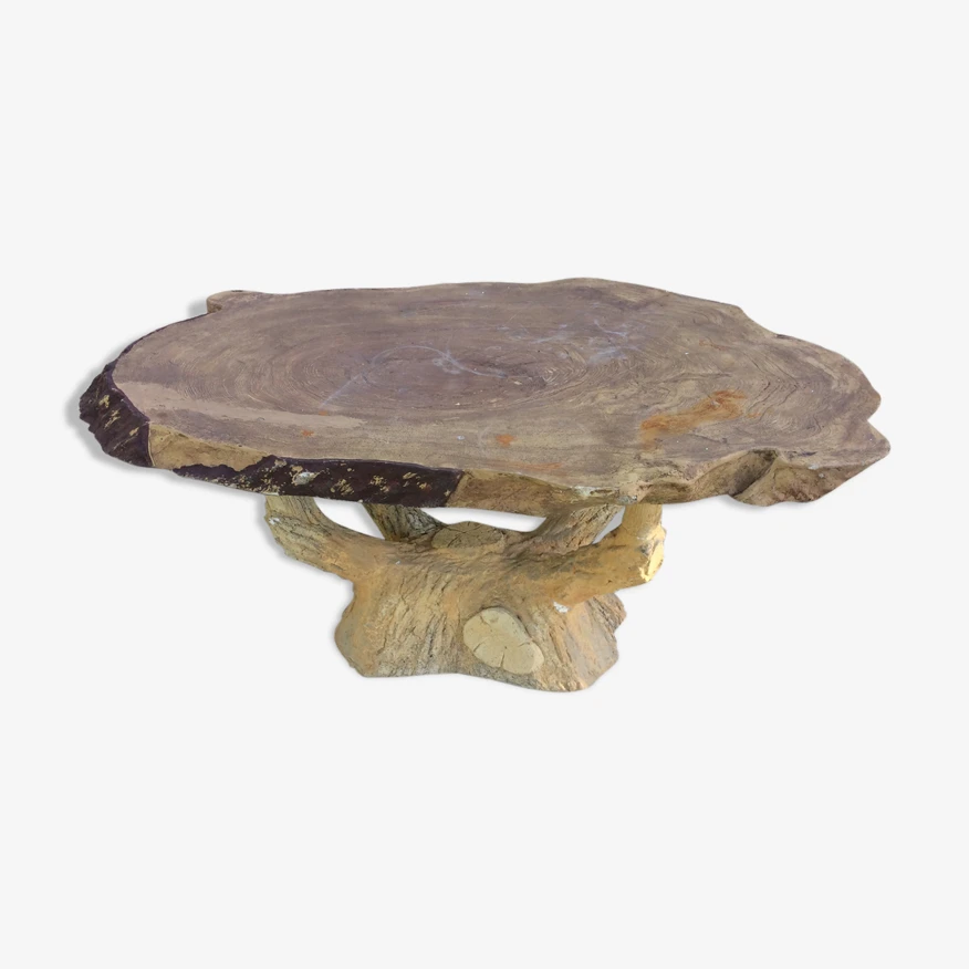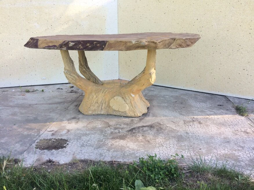 Remarquable table de jardin en béton imitation bois, années 1930.