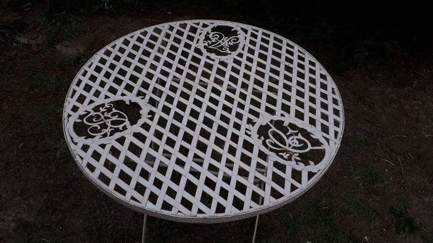 Cette jolie table en fer forgé, ancienne et rare, rajoutera une touche élégante à la décoration de votre jardin, terrasse ou balcon.
