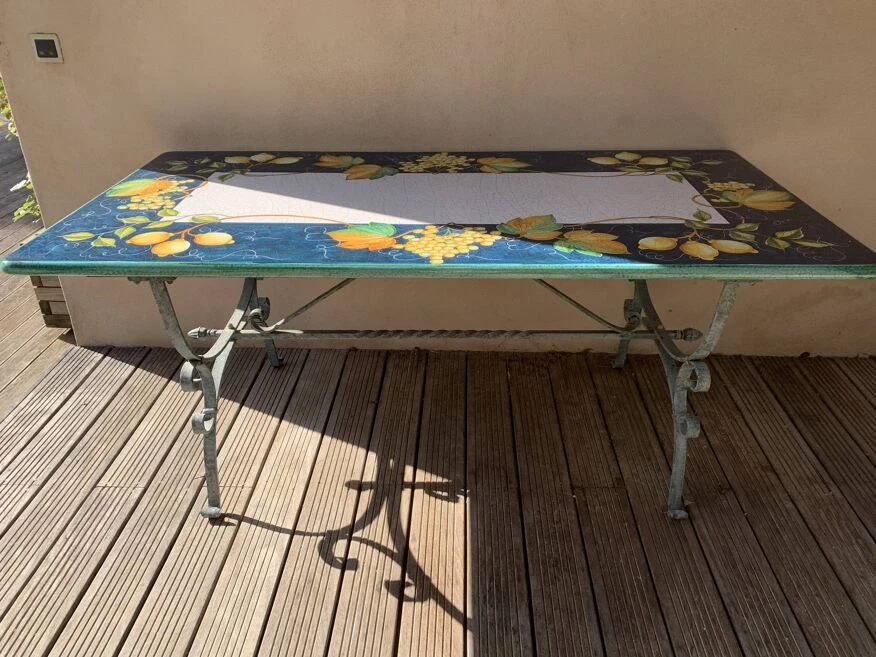 Table En Tôle Peinte Salon De Jardin Ferronnerie 1950 Piétement