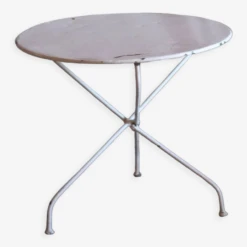 Table ronde pliante de jardin en fer forgé du milieu du xxème siècle.