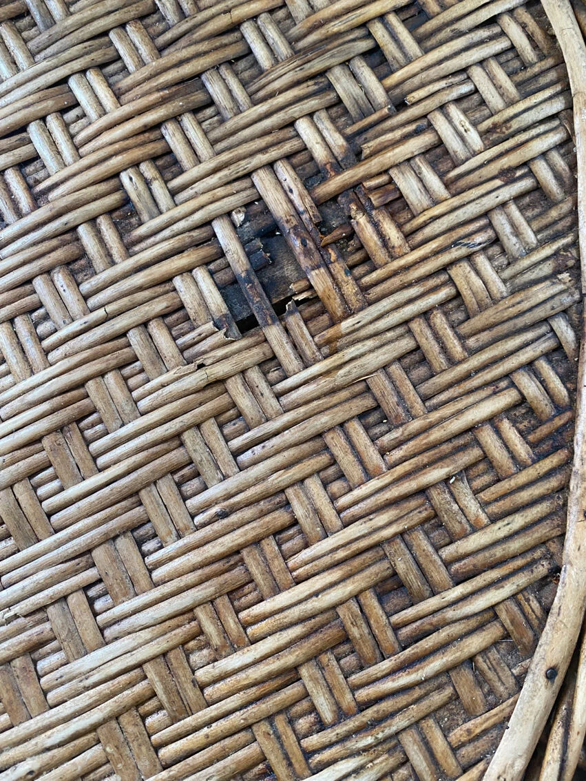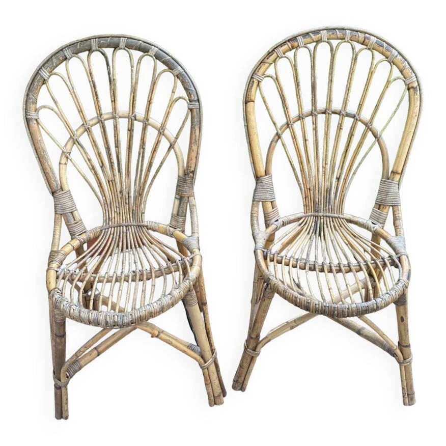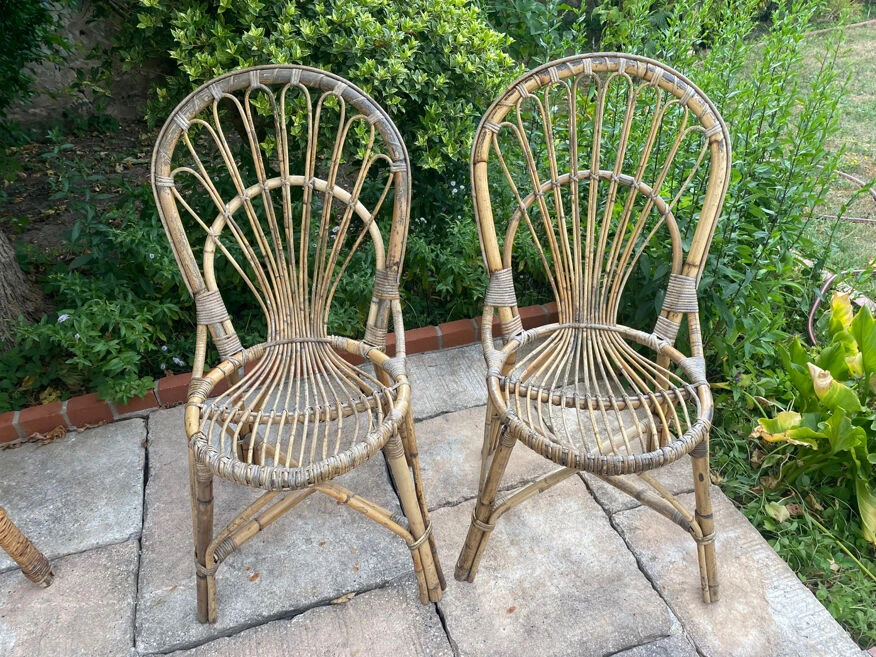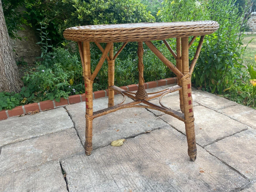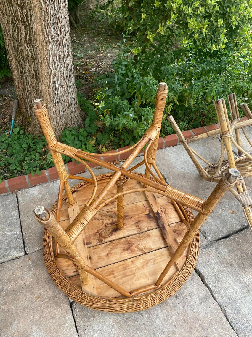 Table en rotin 1920 avec ses deux chaises en rotin.