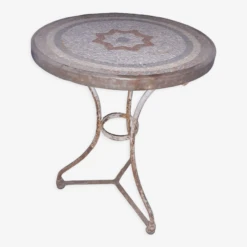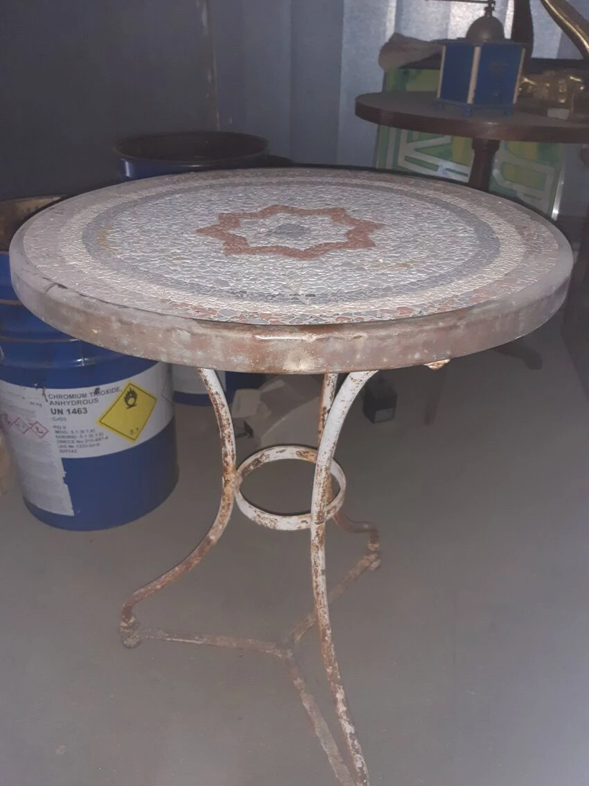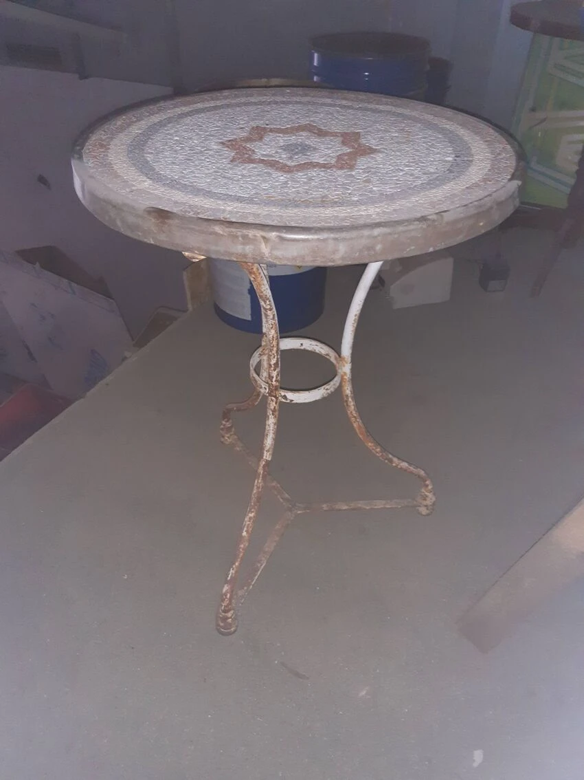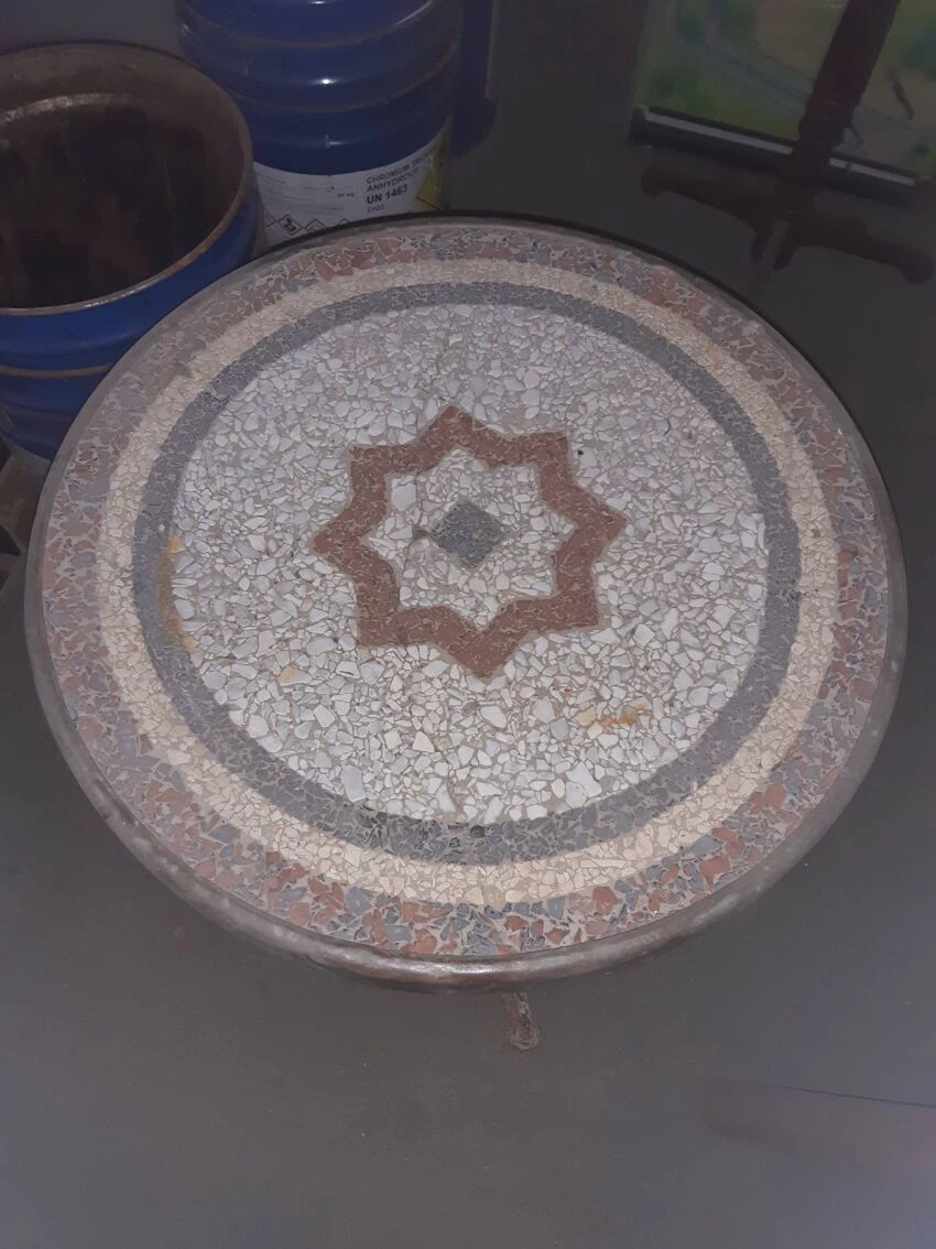 Guéridon pied métal dessus béton mosaïque diamètre 55 hauteur 71, 5 cm.