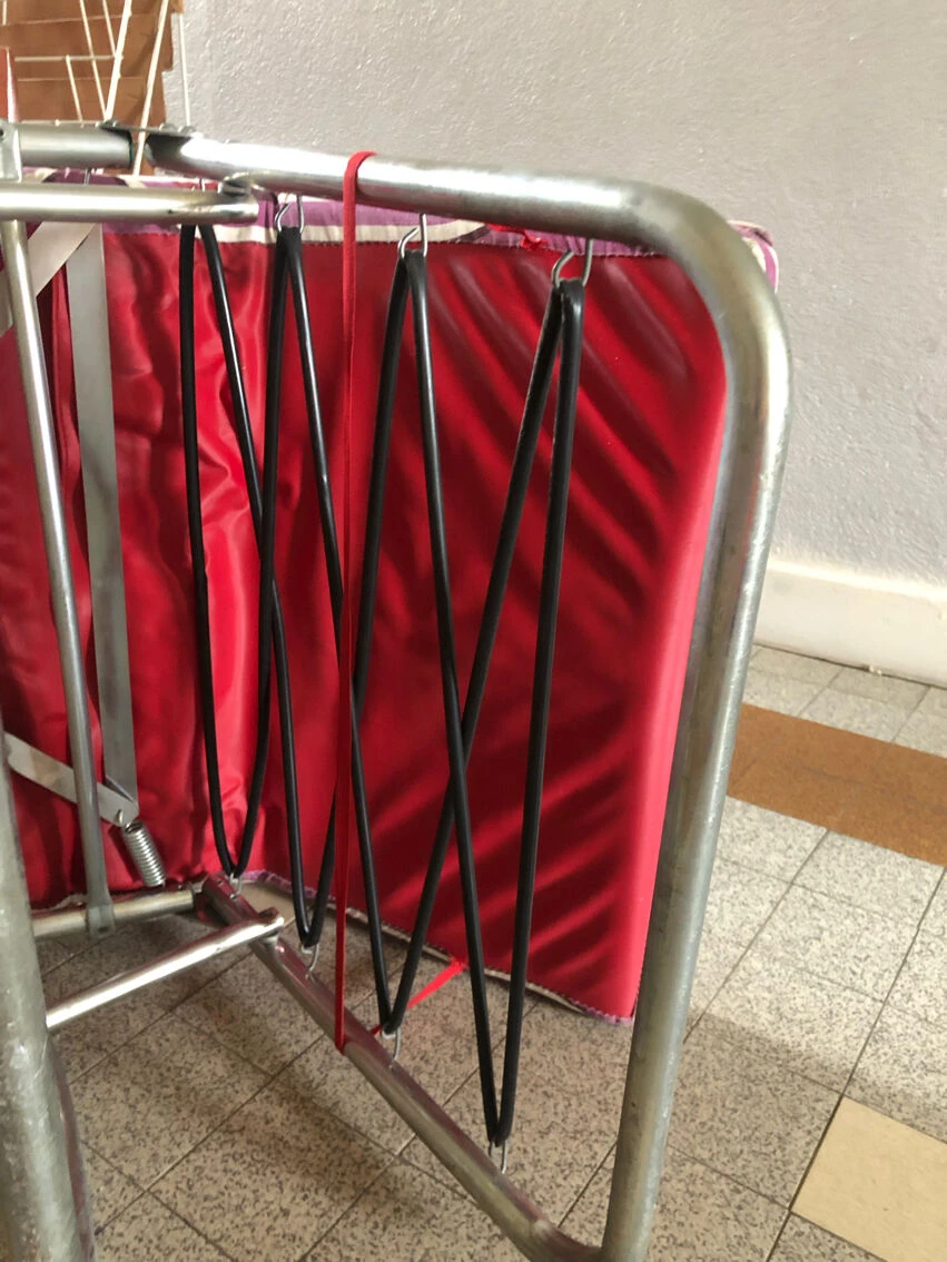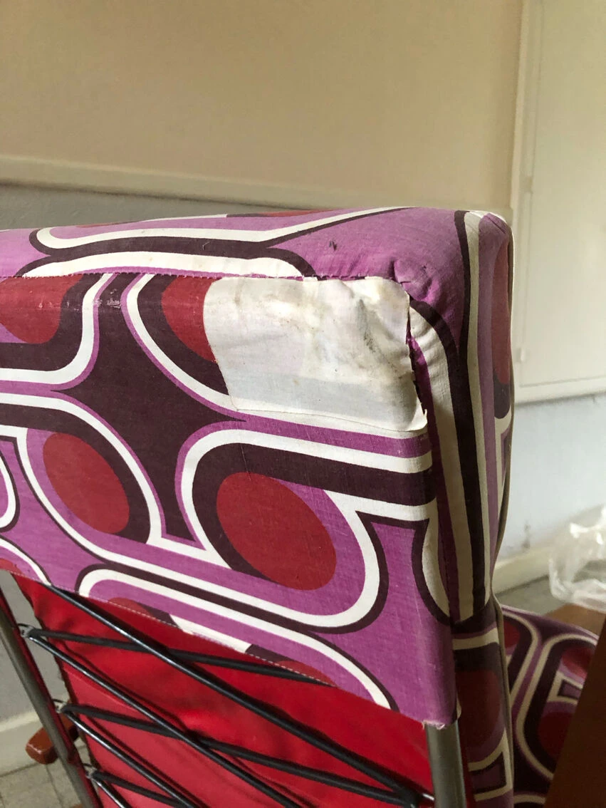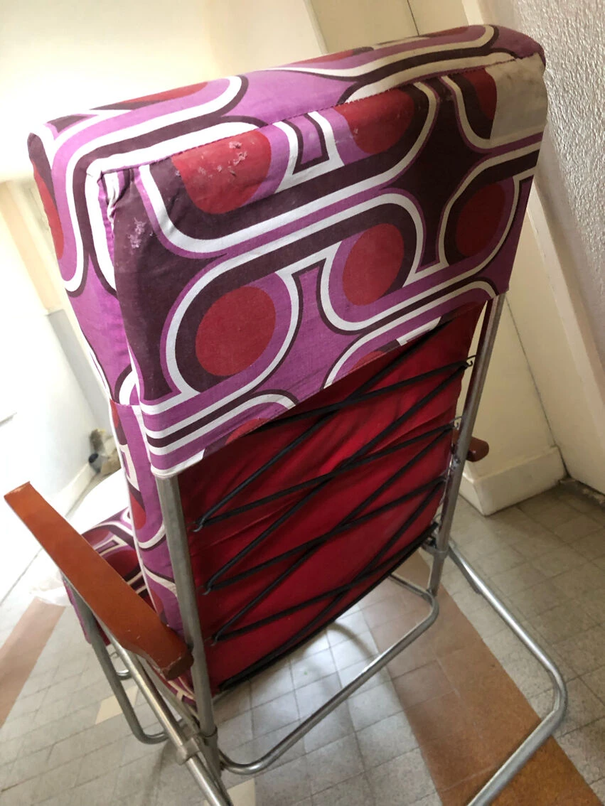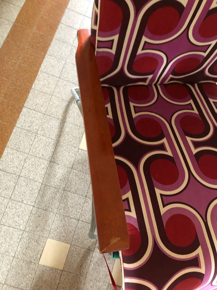 Les accotoirs en bois se soulèvent pour régler l’inclinaison du dossier.