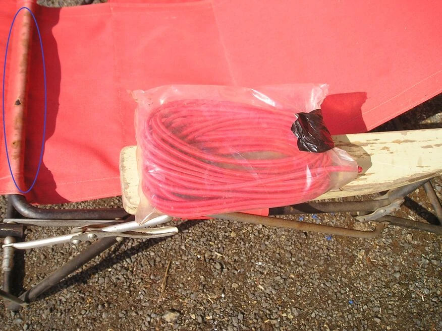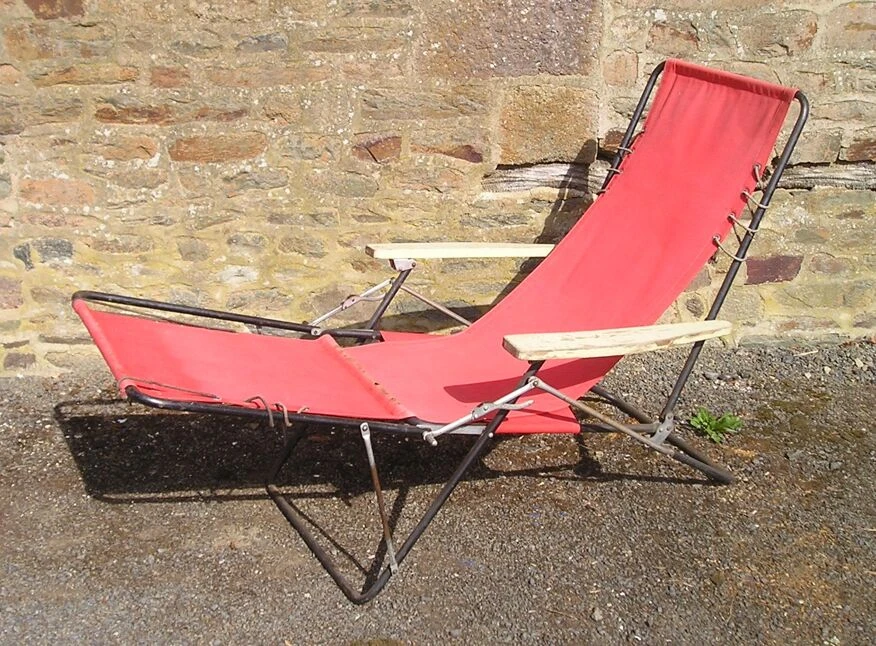 Structure en métal avec toile rouge d’origine (élastique fourni à changer).