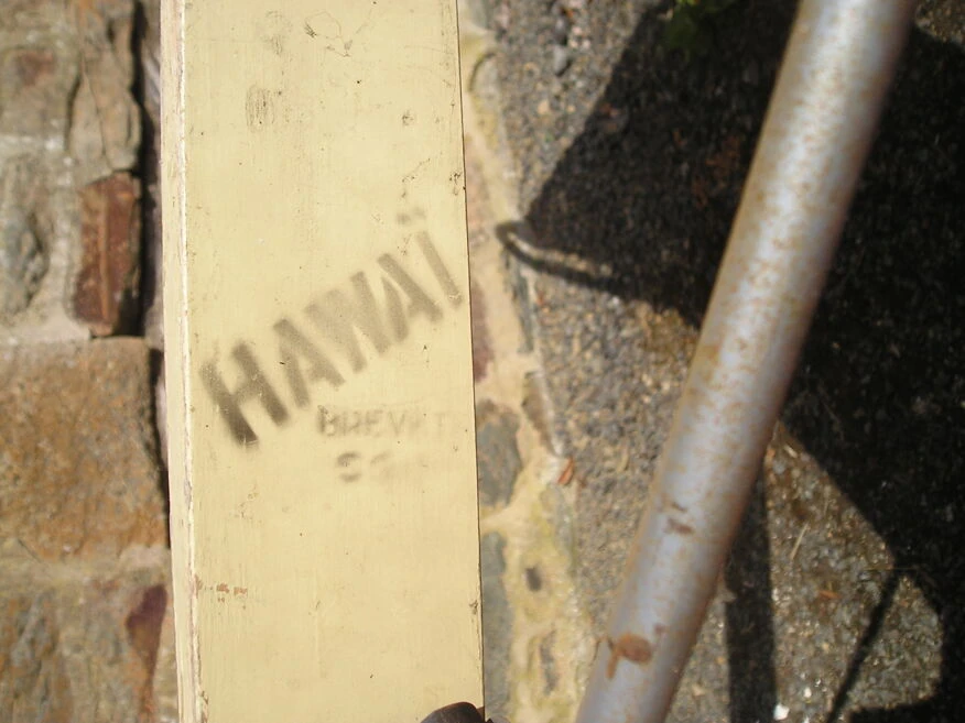 Chaise longue dans son jus à finir de nettoyer, avec tampon « hawai » sous un accoudoir.