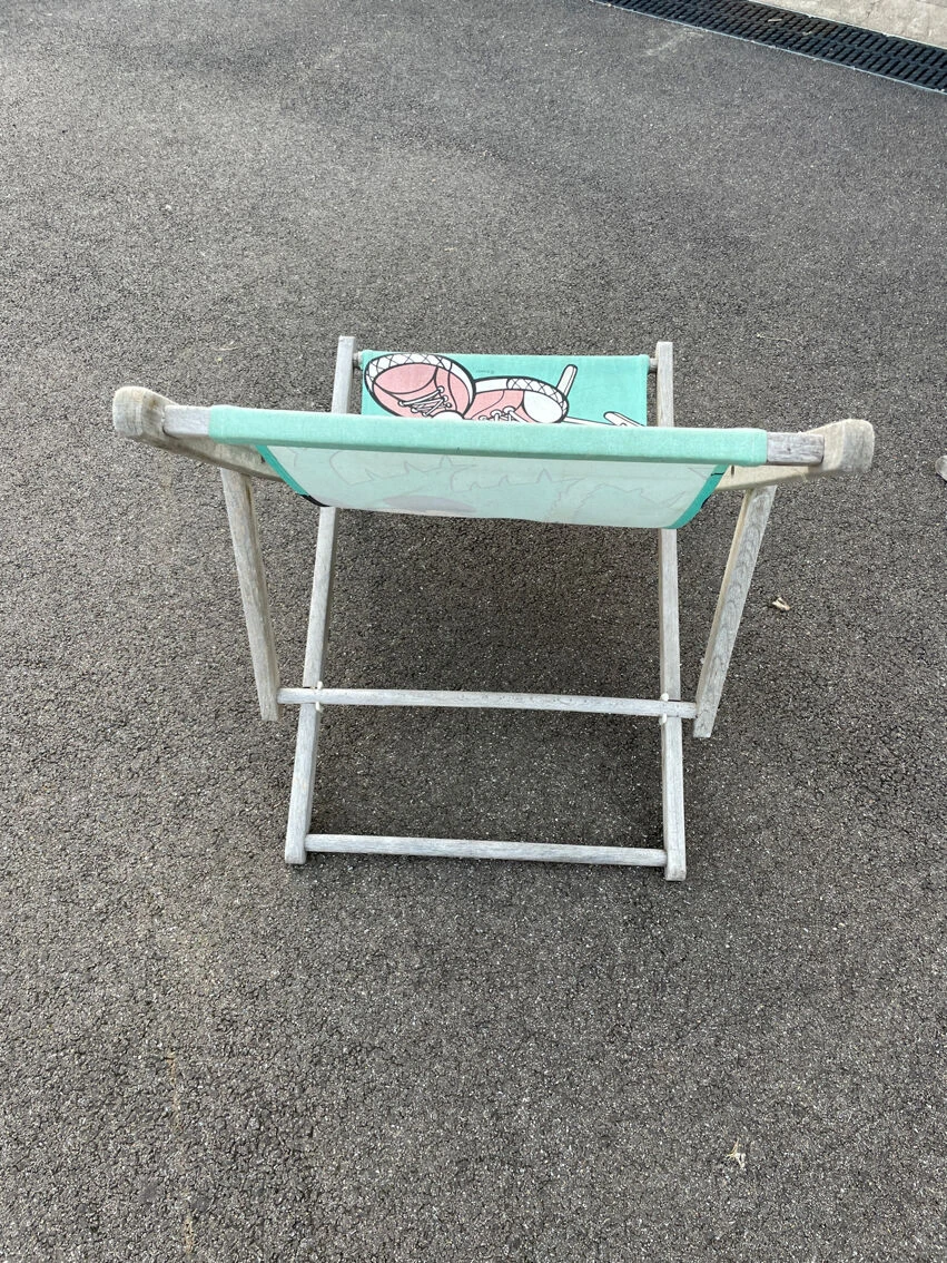 Le tissu pourrait être nettoyé et le bois teinté.