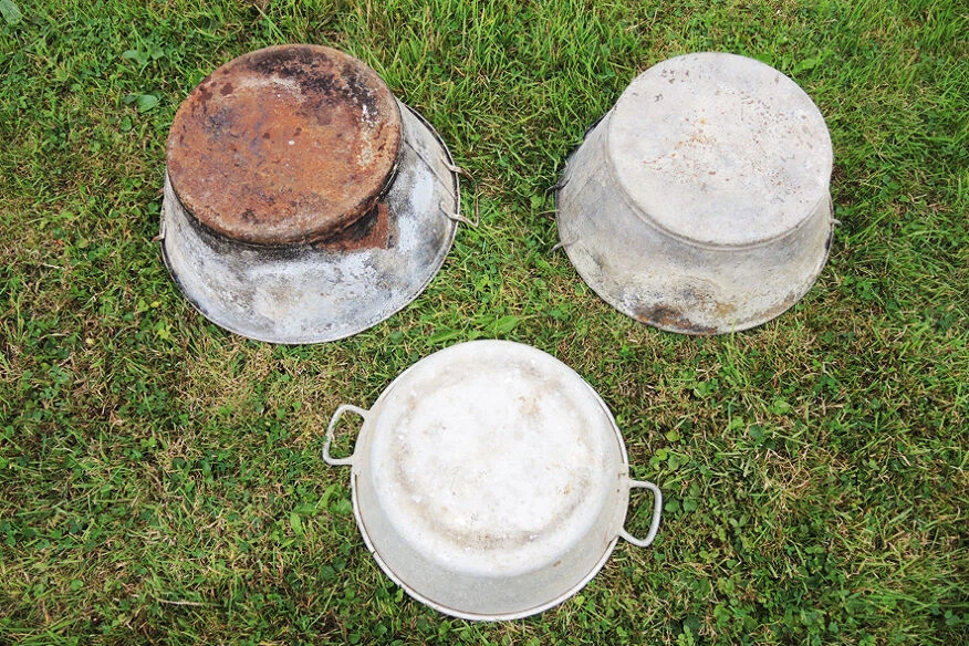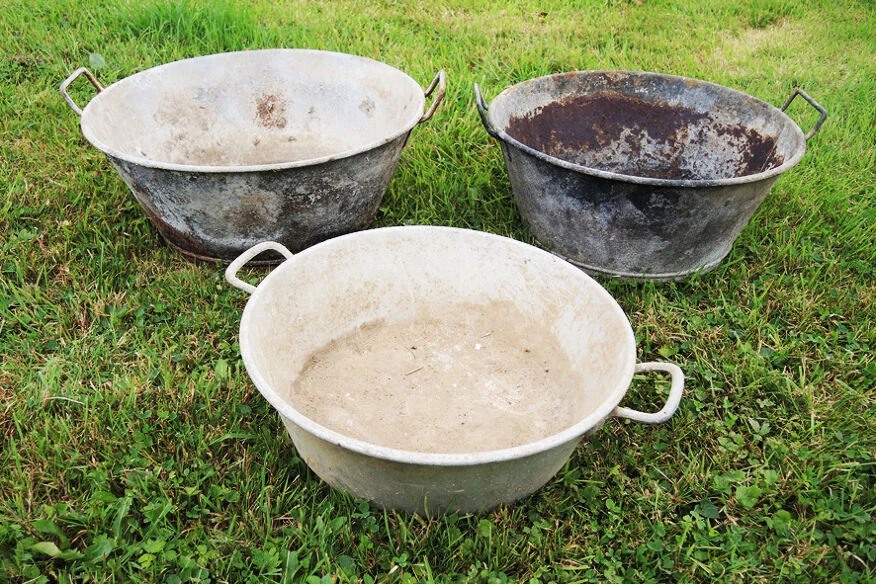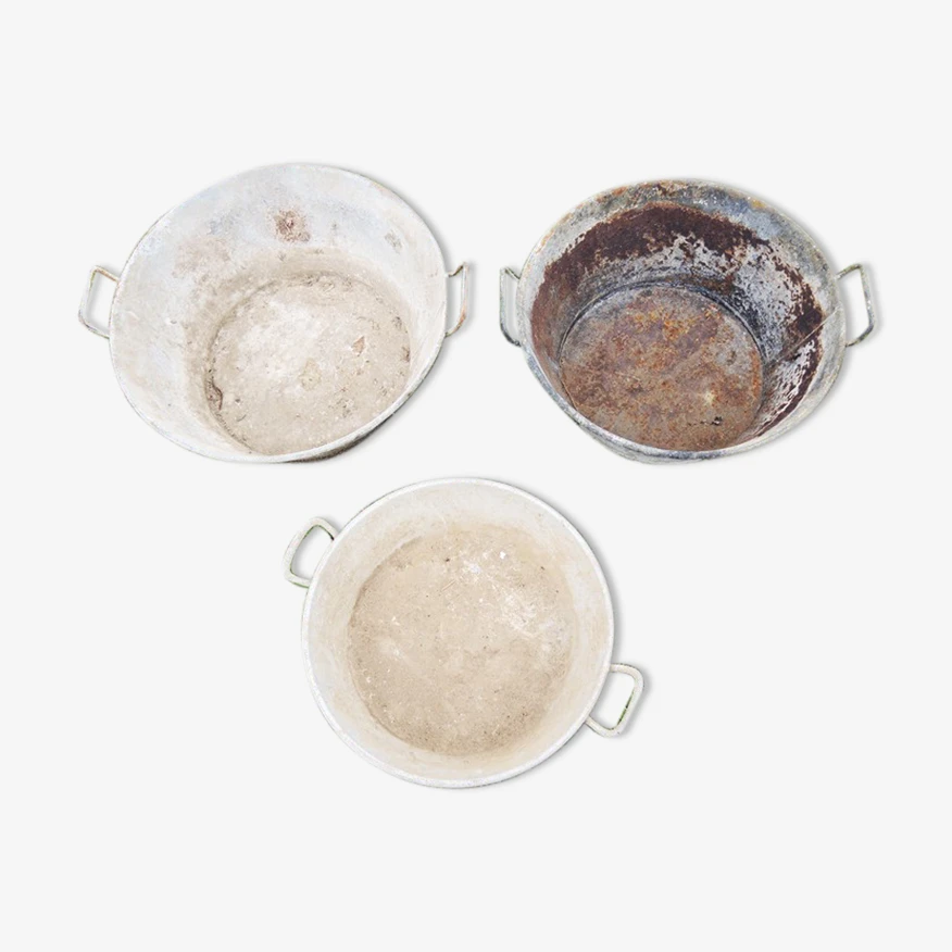 Vous tomberez sous le charme de ce trio de bassines anciennes en zinc !